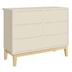 Cômoda 6 Gavetas Classic New Areia Fosco Com Natural - MoveisaquiA Cômoda 6 gavetas Classic New - MóveisAqui, é perfeita para o quartinho do seu baby, possui pés em madeira maciça que contribuem para o estilo retrô, possui um desing clean que combina com vários estilos de decoração. Contempla amplas seis gavetas, duas contendo divisórias, para uma maravilhosa organização das roupinhas e itens do seu bebê, possibilita um espaço para armazenamento, de modo que a organização do dia-a-dia possa ser mais fácil. Possui puxadores embutidos, onde as aberturas ocorrem através de recortes no MDF que possibilitam o perfeito encaixe da mão para que possa abrir as portas e gavetas.Dimensões do Produto Montado:Altura: 91 cmLargura: 116 cmProfundidade: 45 cmObservações:- 06 gavetas;- Puxadores Embutidos- Corrediças Telescópicas- Sistema Anti Tombamento- 02 gavetas com divisórias- Pés na cor Natural;- Pintura ultravioleta com acabamento fosco.