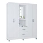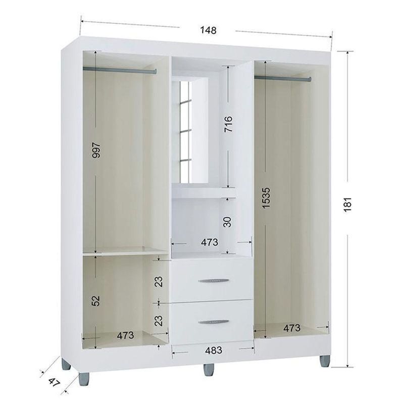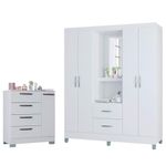 Cômoda 868 4 Gavetas E 1 Porta Com Guarda Roupa Solteiro Córdoba 4 Portas Branco Brilho - PoquemaCômoda 868 4 Gavetas e 1 Porta com Guarda Roupa Solteiro Córdoba 4 Portas Branco Brilho - PoquemaEstá montando seu quarto? Então apresentamos para você este belo conjunto composto pela cômoda da linha 868 e o guarda roupa da linha Córdoba. A cômoda possui quatro gavetas espaçosas equipadas com corrediças metálicas proporcionando um deslizamento suave. Além disso, conta com uma porta lateral aumentando o espaço. Já o guarda roupa vem com quatro portas e duas gavetas, assim como a cômoda com corrediças metálicas. Acompanha espelho, trazendo mais praticidade. Os puxadores e os pés tanto da cômoda quanto do guarda roupa são em plástico resistente, o que contribui para a durabilidade. Fabricados pela Poquema, são desenvolvidos em MDP oferecendo uma combinação perfeita de praticidade, resistência e estilo, ideal para compor qualquer quarto. Confira e aproveite! Características técnicas: Cômoda 868 4 Gavetas e 1 Porta Branco Brilho - Poquema - Desenvolvido em MDP de 12mm - Pintura na cor Branco - Acabamento em UV brilho - Possui 4 gavetas - Possui 1 porta - Possui 1 prateleira - Dobradiças metálicas - Corrediças metálicas - Puxadores em plástico prata - Pés em plástico prata - Lindo design Dimensões: Altura: 95 cm Largura: 86 cm Profundidade: 40 cmGuarda Roupa Solteiro Cordoba 4 Portas Branco Brilho - Poquema- Material da estrutura em MDP - Acabamento em pintura U.V - 4 Portas - 2 Gavetas - Corrediças metálica - Cabideiros - Prateleiras - Dobradiças metálica - Puxadores de plástico - Possui pés plástico - Possui espelho - Amplo espaço interno - Design modernoDimensões: Altura: 181 cm Largura: 148 cm Profundidade: 47 cmOBS: Não acompanha decorações, utensílios, eletros e acessórios.Informações importantes: *Imagens meramente ilustrativas, cores e estampas podem variar conforme lote. *Não realizamos a montagem ou instalação do produto, porém acompanha manual de instruções. *Toda mercadoria segue segurada contra qualquer sinistro, em caso de anormalidade, recuse. *Conferir a quantidade de volumes. *As caixas ou pacotes possuem identificação com o nome, cidade e quantidades de volumes relativos à compra para conferencia do recebedor.