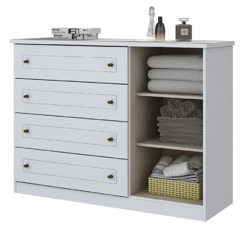 Cômoda Americana 01 Porta 04 Gavetas Henn Branco HpEsse produto é inspirado na decoração escandinava, aconchegante e encantador, capaz de adequar o tradicional com o contemporâneo, excelente para modernizar seu ambiente, podendo ser para quartos adultos, juvenil e infantil. Possui medidas de 1.010mm de altura, 1.265mm de largura e 510 de profundidade, nas gavetas possuem desenhos de usinagem em baixo relevo, gavetas com corrediças telescópicas asseguram um fechamento suave, puxadores ABS na cor bronze. Deixando qualquer ambiente moderno e clean, inovando sua forma de decorar seus espaços.CARACTERÍSTICAS GERAIS:Estilo: ModernoLinha: AmericanaAmbiente Principal: QuartoMarca: HennOrigem: NacionalGarantia do Fornecedor: 3 MesesItens Incls: 1 Cômoda Americana e Instrução de ATENÇÃO / IMPORTANTE:Necessita : SimSistema de : Parafs e Cavilhas Flex: NãoComplexidade de : Média pode ser montado por mais de uma pessoa ou necessitar maior conhecimento de ./Instalação a cargo do cliente. Não dispomos de montadores. Mas acompanha manual para , bastante intuitivo.Recomendações de , Manutenções e Limpeza: Para limpeza de seu móvel, use uma flanela limpa e seca. Não utilize produtos químicos que possam danificar o produto.As imagens são meramente ilustrativas. As cores podem sofrer alterações devido a luminosidade, monitor e a percepção do usuário.Desmontagens, subir escadas/elevadores ou transporte por guincho para apartamentos, e suas despesas são a cargo do cliente.Eletros, Eletrônicos e decorações não acompanham o produto.Nossa garantia é contra s de fabricação, a qual tem um prazo de 3 meses contados a partir da data de entrega do produto. Nossa garantia NÃO cobre s por inadequado, abusivo ou falta de cuidados com o produto.FICHA TÉCNICA:Cor Interna: TramaAcabamento: Pintura UVEscala de Brilho: FoscoMaterial Principal: MDPMaterial do Fundo: MDFQtd. Gavetas: 04Peso Máximo por Gaveta: 3 KgMaterial do Puxador Gaveta: ABSMaterial da Corrediça: MetálicasMaterial da Gaveta: MDPQtd. Portas: 01Material da Dobradiça: MetálicasMaterial do Puxador Porta: ABSTipo Porta: BaterQtd. Prateleiras: 02Peso Máximo por Prateleira: 8 KgMaterial da Prateleira: MDPQtd. Pés: Não possuiProduto Suporte até (Kg): 36 KgPossui Vidro: NãoPossui Espelho: NãoPossui Iluminação: NãoTampo Basculante: NãoPossui Organizador de Gaveta: NãoPossui porta Objetos: NãoPossui Nichos: NãoMedidas Montado: 101 x 126,5 x 51 CmPeso Montado: 56 KgCor: Branco HP