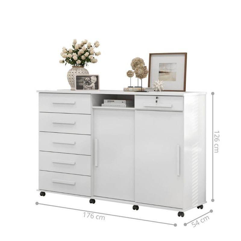 Cômoda Austria Branco BrilhoTransforme o seu quarto com a elegância e funcionalidade dessa Cômoda. Este móvel foi projetado para oferecer não apenas um espaço de armazenamento, mas também um toque de modernidade e estilo ao seu ambiente. Com um design sofisticado e detalhes que encantam, a cômoda é a escolha perfeita para quem busca qualidade e beleza em um único produto.Dimensões do produto montado:Altura: 126 cmLargura: 176 cmProfundidade: 54 cmCaracterísticas:- Material MDF- Cor branco brilho- Porta- Gaveta- Nicho- PéItens Incluso:01 Cômoda.Kit completo para montagem.Manual de montagem.Observações:- Não nos responsabilizamos pela montagem do produto.- Sistema de Montagem: Parafusos, Cavilhas e Tampos.- É recomendado que a montagem seja feita por um profissional qualificado.- As imagens indicam uma sugestão de uso e são apenas ilustrativas, os objetos decorativos não estão inclusos.- Ao iniciar a montagem, forre o chão com o papelão das embalagens para proteger as peças de arranhões.Instruções e Cuidados:Limpar com pano seco, manter em lugar livre de umidade, ao abrigo de exposição direta ao sol. País de Origem: Brasil | Duração da Garantia: 3 Meses | Montagem: Necessita Montagem | Largura: 176 | MARCA: Casa H | INSTRUÇÃ-ES/CUIDADOS: Limpar com pano macio e seco, não utilizar produtos abrasivos. | QUANTIDADE DE PORTAS: 2 | PRODUTO: Cômoda | QUANTIDADE DE PRATELEIRAS: 2 | GARANTIA DO FABRICANTE: 3 | PESO DO PRODUTO COM EMBALAGEM (KG): 54 | DESCRIÇÃO DO TAMANHO: 123X176X54 | LARGURA DO PRODUTO COM EMBALAGEM (CM): 55 | MATERIAL PRINCIPAL: MDF | PRODUTO PRECISA DE MONTAGEM?: Sim, a montagem à facil mas sugerimos a contratação de um montador profissional para a montagem do produto. Não nos responsabilizamos por danos causados no ato da montagem. | COMPRIMENTO DO PRODUTO COM EMBALAGEM (CM): 186 | COR PREDOMINANTE: BRANCO BRILHO | ALTURA DO PRODUTO (CM): 123 | LARGURA DO PRODUTO (CM): 176 | CORES DO PRODUTO (FILTRO DE CORES): BRANCO BRILHO | ESTADO DE ORIGEM: SP | COMPRIMENTO DO PRODUTO (CM): 54 | ALTURA DO PRODUTO COM EMBALAGEM (CM): 28 | QUANTIDADE DE GAVETAS: 6 | PESO DO PRODUTO (KG): 100 | QUANTIDADE DE CAIXAS NA EMBALAGEM: 3