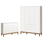 Cômoda Com Porta E Guarda Roupa Infantil Classic Elfe Branco Acetinado Amadeirado - RellerCômoda com Porta e Guarda Roupa Infantil Classic Elfe Branco Acetinado Amadeirado - RellerA mamãe começou a montar o quartinho do seu bebê? Então apresentamos para você este belo conjunto composto pelo cômoda e guarda roupa infantil da linha Classic Elfe. Um conjunto que possui um amplo espaço interno para acomodar as roupinhas e acessórios do se bebê. Fabricados pela Reller, são desenvolvidos em MDF com materiais de alta qualidade garantindo mais durabilidade e resistência. Será um conjunto perfeito para quem deseja um ambiente com elegância e sofisticação, confira!Cômoda com Porta Classic Elfe Branco Acetinado Amadeirado - Reller- Desenvolvido MDF- 4 gavetas com corrediças telescópicas- 1 Porta- Puxadores embutidos- Pintura atóxica que não faz mal a saúde do bebê- Sistema anti tombamento- Pés Classic- Lindo designOBS: Decoração não inclusa.Dimensões:Altura: 97 cmLargura: 135 cmProfundidade: 45 cmGuarda Roupa Infantil Classic Elfe Branco Acetinado Amadeirado - Reller- Desenvolvido MDF- 3 gavetas com corrediças telescópicas- 4 Portas- Cabideiro metálico- Puxadores embutidos- Pintura atóxica que não faz mal a saúde do bebê- Sistema anti tombamento- Pés Classic- Lindo designOBS: Decoração não inclusa.Dimensões:Altura: 205 cmLargura: 154 cmProfundidade: 45 cmInformações importantes:*Não realizamos a montagem ou instalação do produto, porém acompanha manual de instruções.*Toda mercadoria segue segurada contra qualquer sinistro, em caso de anormalidade, recuse.*As caixas ou pacotes possuem identificação com o nome, cidade e quantidades de volumes relativos à compra para conferencia do recebedor.* Imagens meramente ilustrativas, cores e estampas podem variar conforme lote.