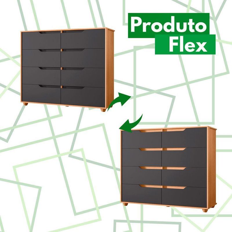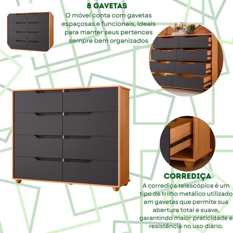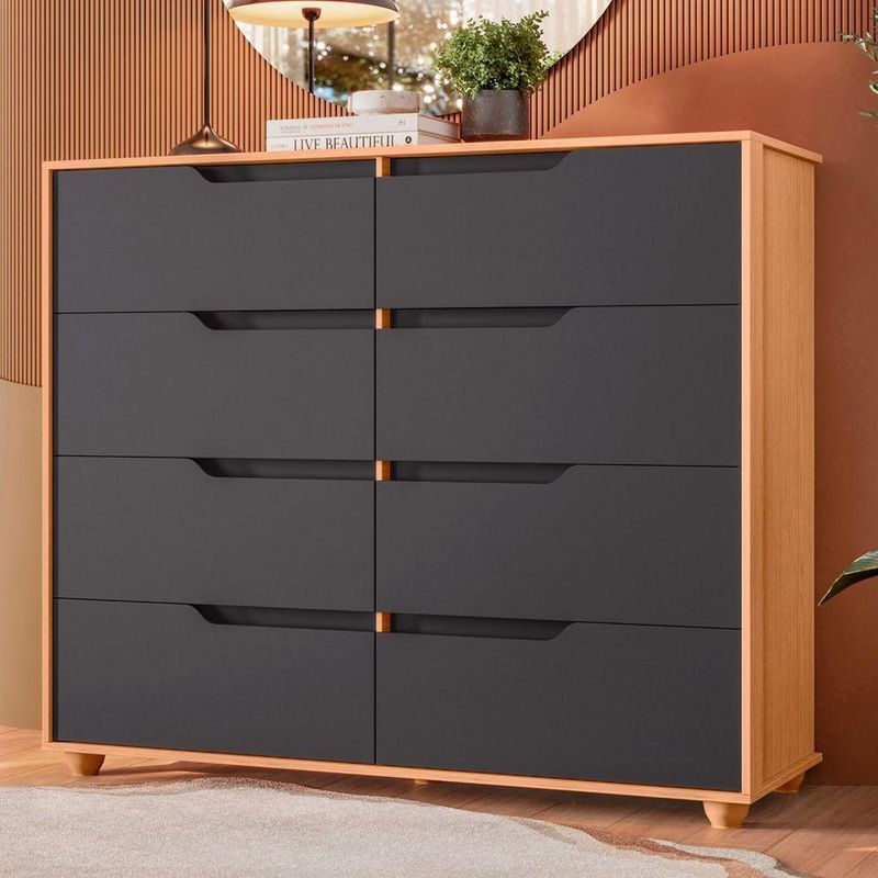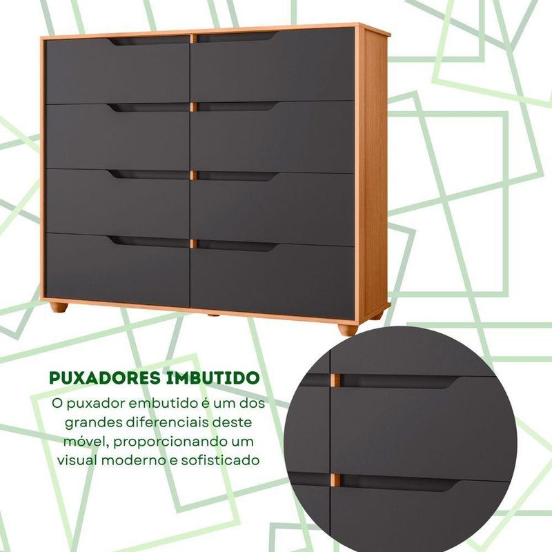 Comoda Doble 8 Gavetas Quarto Freijo Com Titanium Vistas Flex - AlbatrozA Cômoda Doble combina praticidade e elegância em um design contemporâneo que valoriza qualquer ambiente.Com 8 gavetas amplas, oferece excelente capacidade para roupas, acessórios e objetos pessoais, mantendo tudo bem organizado.Seu visual limpo é destacado pelos puxadores embutidos e pelas linhas retas, que transmitem modernidade e sofisticação.Ideal para dormitórios ou espaços multifuncionais, a Doble se adapta facilmente a diferentes estilos de decoração.Dimensões:Altura: 116cmLargura: 136cmProfundidade: 45cmObservações:- 8 gavetas espaçosas com deslizamento suave- Puxadores embutidos e visual moderno- Design clean que se integra a diversos ambientes- Estrutura firme e de alta durabilidade
