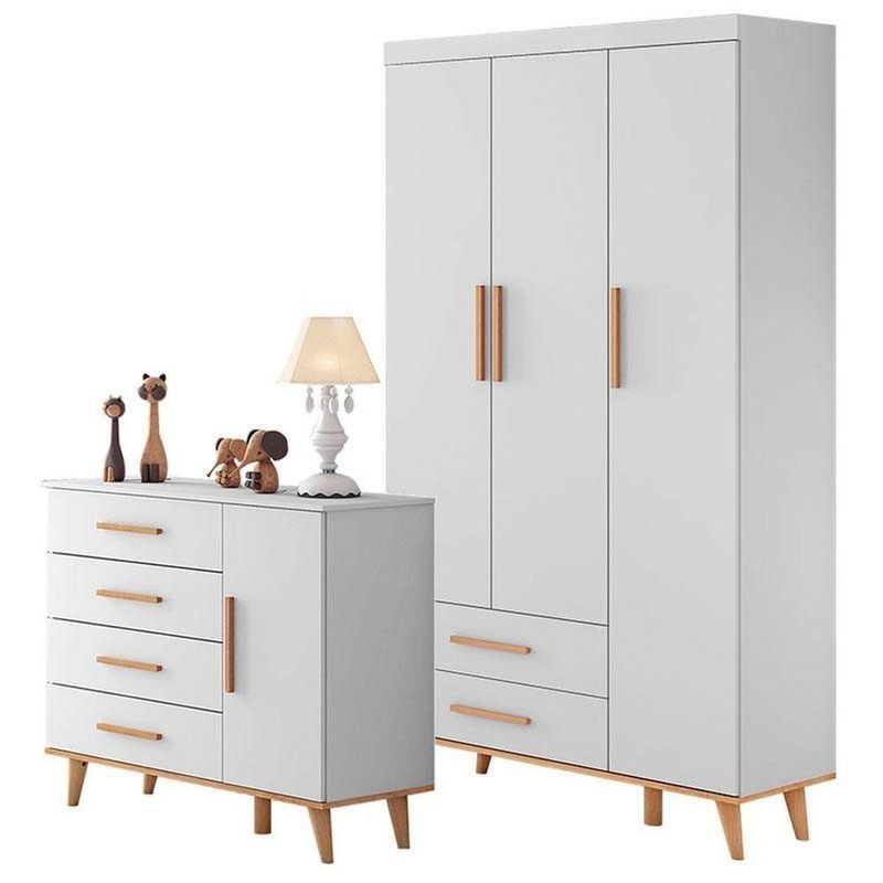 Cômoda E Guarda Roupa Infantil Ludmila Branco Bétula - CarolinaCômoda e Guarda Roupa Infantil Ludmila Branco Bétula - CarolinaApresentamos estes lindos móveis fabricado pela Carolina, Cômoda e Guarda Roupa Ludmila se você procura por espaço, qualidade e ótimo preço você encontra aqui possui um lindo design que proporciona ao quartinho do bebê muita modernidade. Apreveite e peça já o seu!Cômoda Ludmila Branco Bétula - CarolinaCaracterísticas Técnicas:- Desenvolvido 100% em MDF- Pintura e acabamento em U.V na cor Branco Bétula- Possui 04 gavetas com movimentos de abrir e fechar sobre trilhos metálicos- Gavetas com sistema de trava de - Corrediças telescópicas livres de qualquer enrosco- Kit anti-tombamento, fixado na parede- Pés em madeira maciça- Amplo espaço interno- Lindo designDimensões:Altura: 92 cmLargura: 112 cmProfundidade: 41 cmGuarda Roupa Infantil Ludmila Branco Bétula - CarolinaCaracterísticas Técnicas:- Desenvolvido em MDF- Pintura na cor Branco Acetinado Bétula- Pintura e acabamento em U.V que não faz mal a saúde do bebê- Possui 3 Portas- Possui 2 gavetas- 2 pares de Corrediças Telescópicas- Gavetas com movimentos de abrir e fechar sobre trilhos metálicos- Gavetas com sistema de trava de - Alta resistência e durabilidade- Maior organização, espaço e praticidade- Pés em madeira maciça- Lindo DesignDimensões:Altura: 205 cmLargura: 110 cmProfundidade: 45 cmObs: Não realizamos a montagem, porém acompanha manual de instruções.