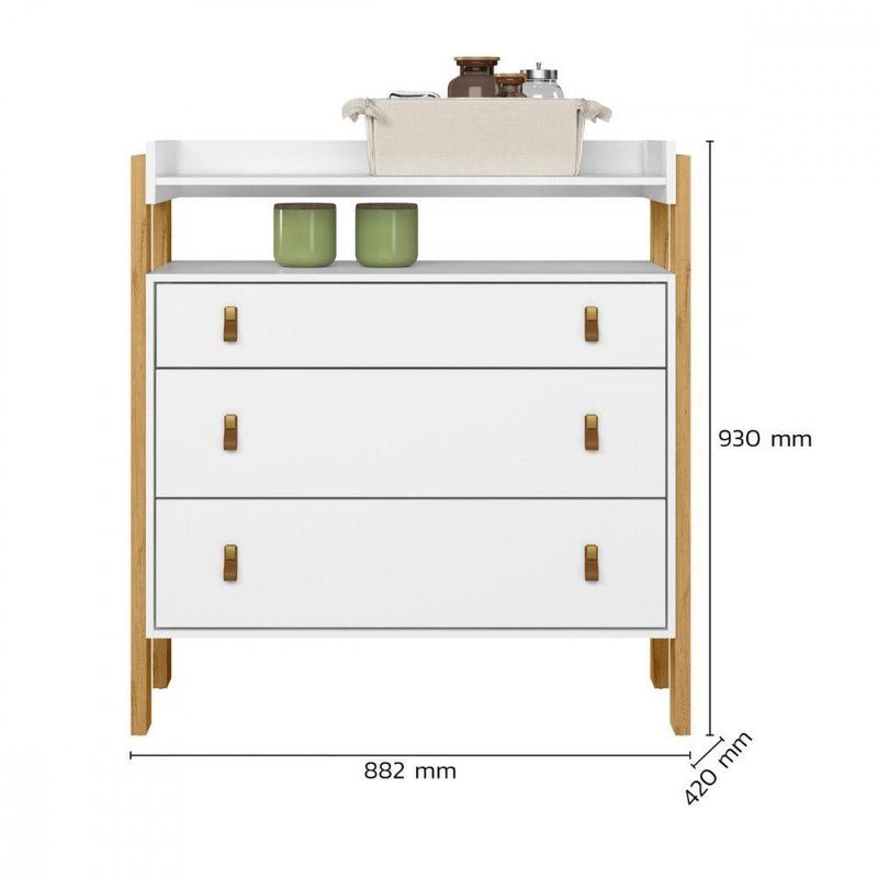 Cômoda Fantasia 3 Gavetas Branco Qmovi BrancoTransforme o quarto com estilo e funcionalidade! A comoda Encanto Slim une organizacao e praticidade em um so movel, venha conferir!Dimensoes: Altura: 93 cm | Largura: 88 cm | Profundidade: 42 cm Caracteristicas: - Estrutura em MDP de 15 e 12mm e MDF - Gavetas com corredicas metalicas - Puxadores em TPU (inspirado no couro) - Pes em MDF de 25mm - Acabamento/Pintura: Fosco - Suporte de peso das prateleiras: 5kg - Suporte de peso das gavetas: 5kg - Suporte de peso do tampo: 10kg - Possui sistema anti-tombamento - Garantia de 3 meses ** Imagens ilustrativas. Objetos nao acompanham o produto. ** O produto e enviado desmontado. AVISO: Esclarecemos que a Opcao Moveis se responsabilizara pela entrega dos produtos adquiridos ate a porta de entrada (casas) ou portaria (predios ou condominios) do endereco indicado, ou seja: e de total responsabilidade do cliente a montagem, desmontagem e instalacao do produto adquirido. Para evitar futuros desagrados ou imprevistos com a entrega, tambem e necessario que o cliente confira as dimensoes do produto escolhido, antes de finalizar a compra, devendo certificar-se de que a mercadoria passara normalmente por elevador, porta, escada e corredor.