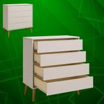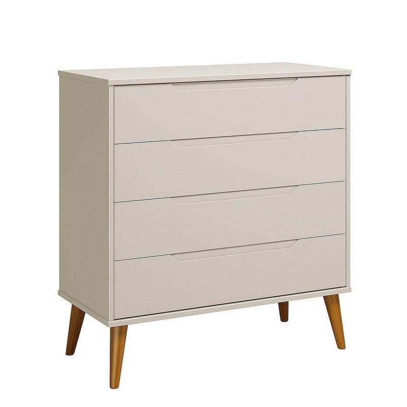 Comoda Gaveteira Elfe Retro 4 Gavetas Areia Fosco - MoveisaquiCom design contemporâneo e linhas elegantes, a Cômoda Gaveteira Elfe é a escolha ideal para quem busca organização com sofisticação. Seu visual clean valoriza diferentes estilos de ambiente, trazendo equilíbrio entre funcionalidade e estética.Conta com 4 gavetas amplas, perfeitas para armazenar roupas, acessórios e objetos do dia a dia de forma prática e organizada. As frentes com puxador usinado garantem um acabamento moderno e dispensam puxadores externos, mantendo o visual leve e minimalista.Os pés em madeira elevam o móvel do chão, proporcionando maior estabilidade, durabilidade e um toque de aconchego ao ambiente, além de facilitar a limpeza do espaço.Dimensões:Altura: 97 cmLargura: 90 cmProfundidade: 45 cmObservações:- 4 gavetas espaçosas para melhor organização- Puxadores usinados, sem puxadores externos- Design moderno e versátil- Pés em madeira que garantem firmeza e elegância- Ideal para dormitórios, closets ou ambientes diversos