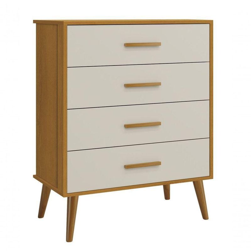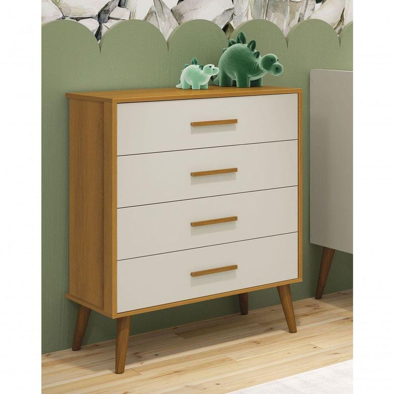 Cômoda Gaveteira Retrô Isis Areia Fosco Com Savana Fosco - MoveisaquiA Cômoda Gaveteira Retrô Isis - MóveisAqui, com design retrô devido ao modelo de seus pés em madeira maciça, entrega um desing clean que combina com vários estilos de decoração. É ótima para a organização das roupinhas e itens do seu bebê, possibilita um amplo espaço para armazenamento com suas quatro gavetas, de maneira que a organização do dia-a-dia possa ser mais fácil. E tem seus puxadores em MDF envelopado.Dimensões do Produto Montado:Altura: 97 cmLargura: 77 cmProfundidade: 41 cmObservações:- 04 gavetas;- Produzida em MDF;- Corrediças Telescópicas;- Puxadores em MDF;- Sistema anti Tombamento;- Pés na cor Madeira;- Pintura ultravioleta com acabamento fosco.