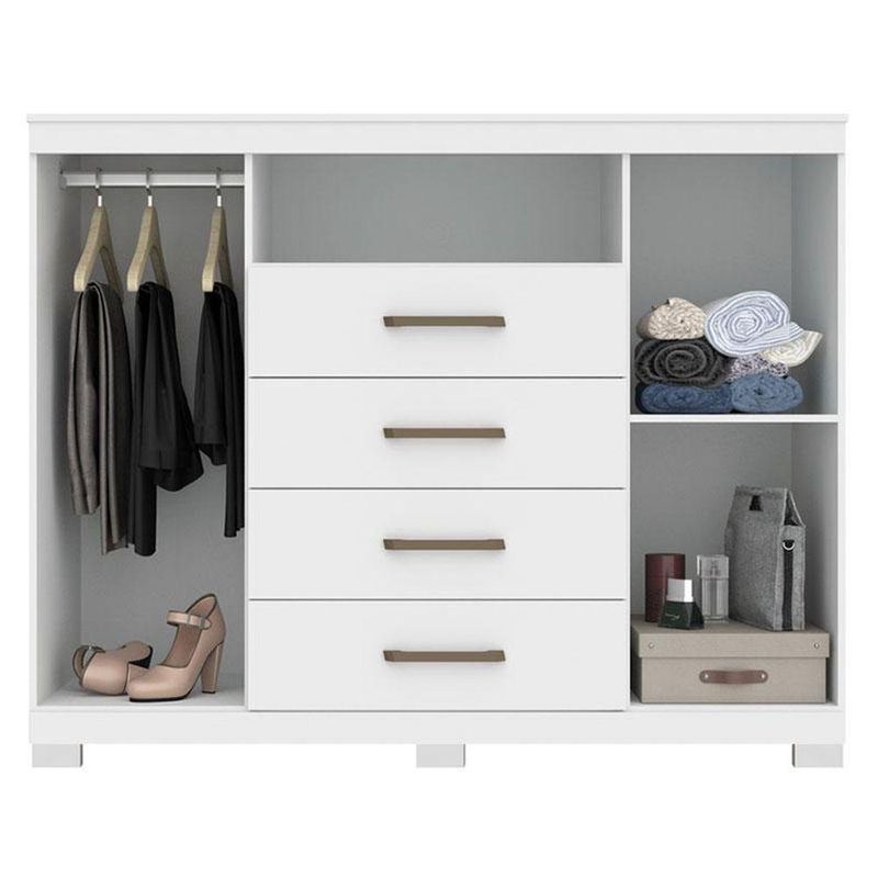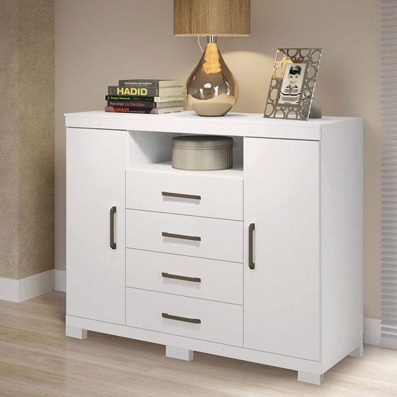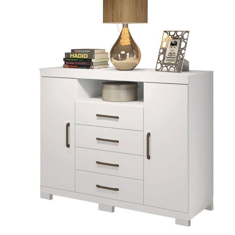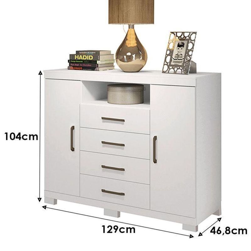 Comoda Havana Master Com Pés Branco Brilho - Santos AndiráComoda Havana Master com pés Branco Brilho - Santos AndiráComoda Havana Master com pés Branco: A Cômoda Havana Master é espaço e funcionalidade para seu quarto: duas portas (uma com cabideiro), quatro gavetas espaçosas e tampo. Pés elevam o móvel facilitando a limpeza e o acabamento traz um toque elegante ao ambiente.Características técnicas:- Desenvolvida em MDP- Pintura em Verniz Fosco- Quatro Gavetas com Corrediças Telescópicas - Puxadores em ABS- Possui um cabideiro- Possui pésDimensões:Altura: 104 cmLargura: 129 cmProfundidade: 46,8 cmInformações importantes:* Não acompanha decorações e acessórios* Nossas cargas possuem seguro, portanto, no ato da entrega, confira a quantidade de volumes recebida, e também o estado da embalagem. Se houver qualquer inconsistência, não assine o comprovante de entrega;* O armazenamento do produto no endereço de entrega é de responsabilidade do comprador. Evite apoiar o produto na vertical, bem como evite áreas que deixem o produto exposto a chuva ou umidade excessiva;* Pequenas variações de tonalidade são possíveis, em razão da diferença de resolução da tela onde o anúncio está sendo visualizado. Se notar diferença expressiva, comunicar a empresa antes de efetuar a montagem;* O serviço de entrega contratado contempla a entrega até a primeira área coberta ou portaria, não sendo coberto o ato de subir escadas/elevadores ou adentrar nas residências;* Não nos responsabilizamos pela montagem, desmontagem ou instalação do produto. NA