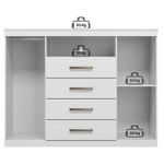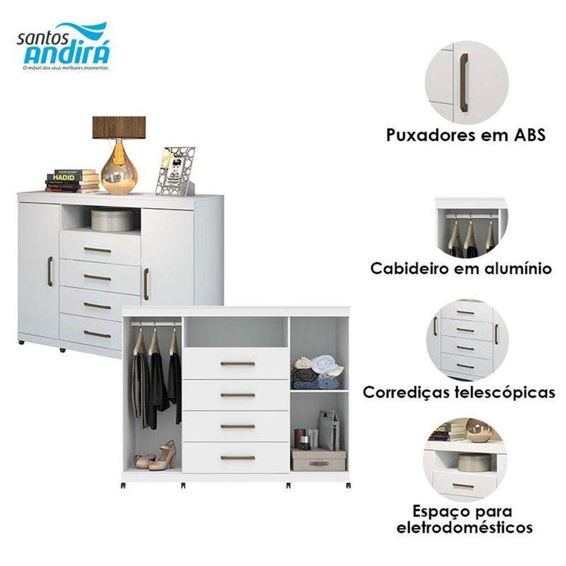 Comoda Havana Master Com Rodizio Branco Brilho - Santos AndiráComoda Havana Master com rodizio Branco Brilho Santos AndiráComoda Havana Master com rodizio Branco: A Cômoda Havana Master é espaço e funcionalidade para seu quarto: duas portas (uma com cabideiro), quatro gavetas espaçosas e tampo. Pés elevam o móvel facilitando a limpeza e o acabamento traz um toque elegante ao ambiente.Características técnicas:- Desenvolvida em MDP- Pintura em Verniz Fosco- Quatro Gavetas com Corrediças Telescópicas- Puxadores em ABS- Possui um cabideiro- Possui rodízioDimensões:Altura: 103 cmLargura: 129 cmProfundidade: 46,8 cmInformações importantes:* Não acompanha decorações e acessórios* Nossas cargas possuem seguro, portanto, no ato da entrega, confira a quantidade de volumes recebida, e também o estado da embalagem. Se houver qualquer inconsistência, não assine o comprovante de entrega;* O armazenamento do produto no endereço de entrega é de responsabilidade do comprador. Evite apoiar o produto na vertical, bem como evite áreas que deixem o produto exposto a chuva ou umidade excessiva;* Pequenas variações de tonalidade são possíveis, em razão da diferença de resolução da tela onde o anúncio está sendo visualizado. Se notar diferença expressiva, comunicar a empresa antes de efetuar a montagem;* O serviço de entrega contratado contempla a entrega até a primeira área coberta ou portaria, não sendo coberto o ato de subir escadas/elevadores ou adentrar nas residências;* Não nos responsabilizamos pela montagem, desmontagem ou instalação do produto.