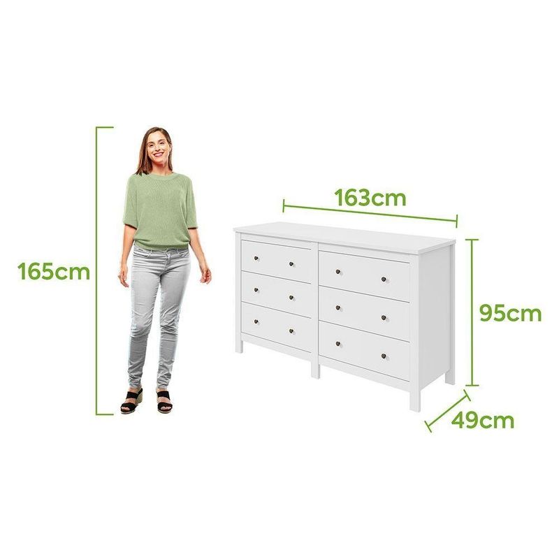 Cômoda Horizontal Maggiore Com 6 Gavetas Lopas BrancoAliada da organizacao do seu dormitorio, a Comoda Maggiore e a peca que falta para garantir um dia a dia mais otimizado e um ambiente bem decorado. Pode ser uma grande aliada do guarda-roupa, reservando-se para as pecas menores e dobraveis, mas tambem pode ser usada sozinha para deixar tudo sempre a mao.Vantagens e Beneficios: Produzido com equipamentos de alta tecnologia Produto avaliado e aprovado por um rigoroso controle de qualidade Facil montagem e manual de montagem simplificado Design minimalista com um toque vintage Acabamento com toque aveludado Gavetas ideais para acomodacao das roupas em maiores quantidades Gavetas grandes e espacosas com corredicas telescopicas Tampo de 25mm para maior resistencia Pes robustos que garantem maior estabilidade Caracteristicas: Produto em MDP/MDF Pintura U.V. e acabamento em micro textura Tampo de 25mm Puxadores em metal 06 gavetas Gavetas com corredicas telescopicas Pes robustos em MDF de 25mm Fundo das gavetas e costas em HDF Dimensoes: Altura: 95 cm Largura: 163 cm Profundidade: 49 cm Peso: 73,31 kg Garantia do Fabricante: 03 meses Observacoes: As imagens sao meramente ilustrativas, nao acompanham os objetos de decoracao. Pode haver alguma diferenca de tonalidade entre a foto e o produto, devido ao tratamento de imagens e a calibracao do monitor. Em caso de divergencias de informacoes, o preco valido sera o informado no carrinho de compras. A entrega e realizada por transportadora, nao nos responsabilizamos, no ato da entrega por desmontagens, subir escadas/elevadores ou transporte por guincho para apartamentos. Eventuais despesas sao de responsabilidade do cliente. Confira as dimensoes dos volumes e certifique-se de que passara normalmente por supostos elevadores, portas, escadas ou corredores. Ao receber a mercadoria, verifique as condicoes da embalagem, caso haja alguma avaria, recuse o produto, faca uma ressalva na Nota Fiscal e entre em contato com nosso SAC. Nao nos responsabilizamos pela montagem dos produtos, mas todos os produtos possuem manual de montagem e voce mesmo podera monta-lo ou contratar um profissional.