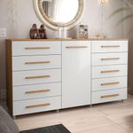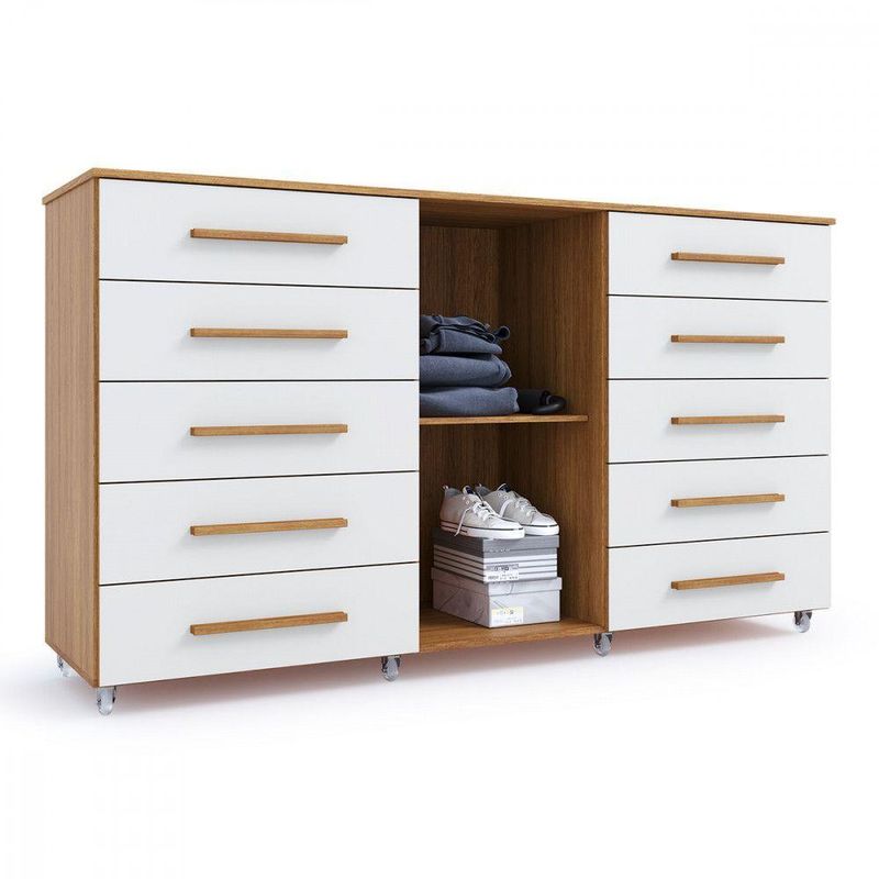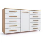 Cômoda Imperial 1 Porta 10 Gavetas Com Rodízio Batrol Freijo Com Off WhiteTransforme seu ambiente com praticidade e elegancia! A Comoda Batrol Imperial oferece amplo espaco interno, gavetas resistentes e rodizios de silicone que facilitam a movimentacao. Ideal para quem busca organizacao e estilo em um so movel.Medidas do Produto Montado Altura: 0,97m Largura: 1,73m Profundidade: 0,46m Diferenciais do Produto Estrutura em MDP 15mm e 12mm 10 gavetas espacosas com corredicas telescopicas de 300mm 1 porta lateral com prateleira interna Rodizios de silicone: 4 com trava + 4 sem trava Puxadores em MDF Topazio Acabamento fosco sofisticado na cor Freijo e Off White Acetinado Capacidade total: ate 70kg Capacidade Interna Gavetas: 0,10m (Altura ) x 0,57m (Largura) x 0,33m (Profundidade) suporta ate 4 kg distribuidos Prateleira interna: ate 4kg distribuidos AVISO! Esclarecemos que a Opcao Moveis se responsabilizara pela entrega dos produtos adquiridos ate a porta de entrada ou portaria do endereco indicado, ou seja: e de total responsabilidade do cliente a montagem, desmontagem e instalacao do produto adquirido. Para evitar futuros desagrados ou imprevistos com a entrega, tambem e necessario que o cliente confira as dimensoes do produto escolhido, antes de finalizar a compra, devendo certificar-se de que a mercadoria passara normalmente por elevador, porta, escada e corredor Imagens meramente ilustrativas. Objetos de decoracao que aparecem nas imagens nao acompanham o produto. As cores podem variar conforme iluminacao do ambiente e configuracao do monitor. Antes da compra, confira atentamente as medidas do produto e do espaco disponivel.