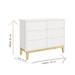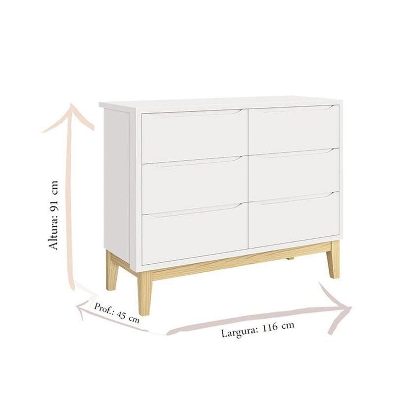 Cômoda Infantil 6 Gavetas Classic Branco Acetinado Com Pés Natural - RellerCômoda Infantil 6 Gavetas Classic Branco Acetinado com Pés Natural – RellerMamãe sabe aquela cômoda nem tão grandona nem tão pequena que sonhamos e buscamos tanto para decorar o quartinho do bebê? Agora nós a temos, a cômoda perfeita não só em design e praticidade como também em sua matéria prima de alta qualidade, desenvolvida pela Reller a Cômoda 6 Gavetas Classic vai ganhar o seu coração, confira as características e aproveite!Características Técnicas: - Desenvolvido em MDF - Puxadores embutidos - Corrediças telescópicas - Sistema antitombamento - 06 gavetas sendo 02 com divisórias - Pés em madeira pinus - Pintura e acabamento UV - Sistema de pintura atóxica, que não faz mal a saúde do bebê - Lindo DesignDimensões: Altura: 91 cm Largura: 116 cm Profundidade: 45 cm OBS: Não realizamos a montagem, porém acompanha manual de instruções.