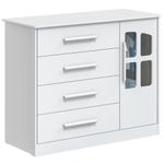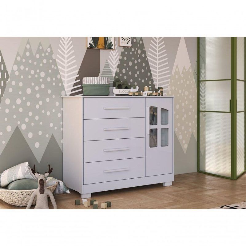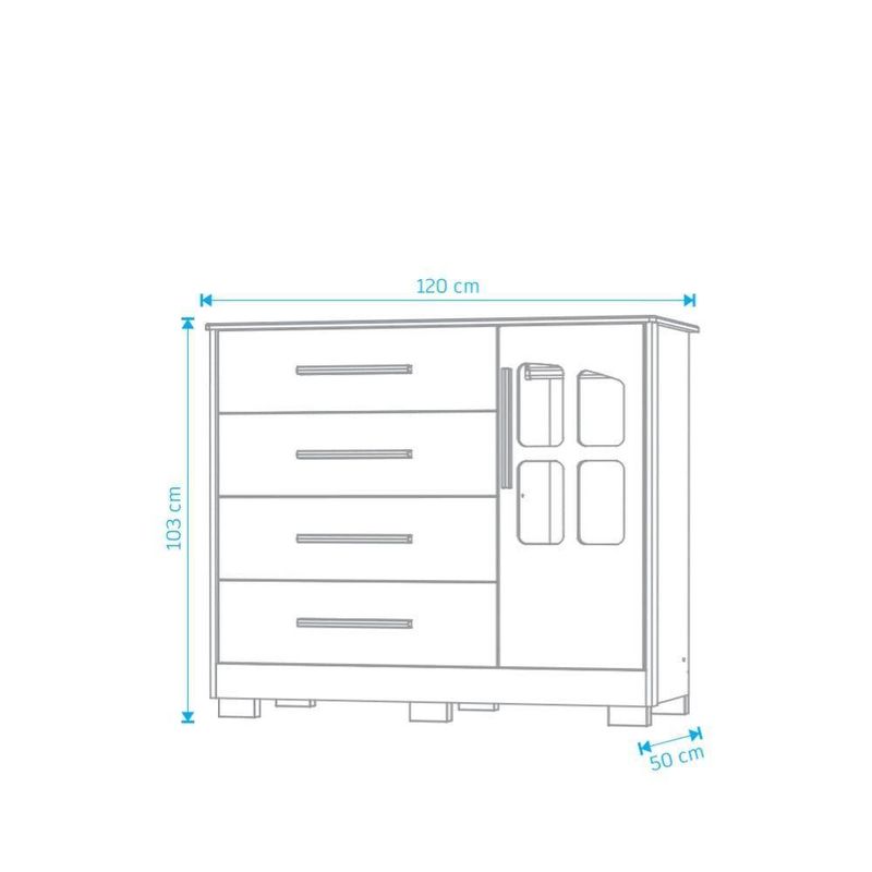 Cômoda Infantil Charlô 1 Porta 4 Gavetas - Móveis Peroba Branco BrilhoA Cômoda Charlô 1 Porta é um produto 100% MDF e possui pintura atóxica. Seu caixote é em chapa de 12 mm, enquanto o tampo superior, as frentes e as molduras são em chapa de 15 mm de espessura. Seus pés são injetados em plástico de alta resistência. Os puxadores são fabricados em MDF revestido com papel melamínico. Possui cabideiro metálico, gavetas com corrediças telescópicas e porta com detalhe em PETG cristal. Aceita adaptação de kit divisórias de gavetas (vendido separadamente).MedidasAltura (cm) 102,6Largura (cm) 120,3Profundidade (cm) 50,3Material PrincipalMDFMaterial dos FundosHDFAcabamento PrincipalVerniz UVLimpeza e ConservaçãoPara limpeza utilizar somente pano limpo e macio, ligeiramente umedecido em água (apenas o bastante para remover a poeira), seguido de um pano seco.Necessita de MontagemSimComplexidade da MontagemAlta: deve ser montado por um montador especializado.Qtd de Prateleiras2Material da PrateleiraMDFEscala de Brilho da PrateleiraSemibrilhoPeso Máximo por Prateleira (kg)5Qtd de Gavetas4Acabamento da GavetaPintura UV e Fita de BordoTipo de Puxador da GavetaPerfil externoMaterial do Puxador da GavetaMDF revestidoObservações:- Todos os produtos têm três (03) meses de garantia fornecida pelo fornecedor- As imagens são meramente ilustrativas, os objetos que ambientam as fotos não acompanham o produto.- Pode haver alguma diferença de tonalidade entre a foto e o produto, devido ao tratamento de imagens e a calibração do monitor- A entrega é realizada por transportadora, não nos responsabilizamos, no ato da entrega por desmontagens, subir escadas/elevadores ou transporte por guincho para apartamentos- Eventuais despesas são de responsabilidade do cliente- Confira as dimensões dos volumes e certifique-se de que passará normalmente por supostos elevadores, portas, escadas ou corredores- Ao receber a mercadoria, verifique as condições da embalagem, caso haja alguma avaria, entre em contato com nosso SAC- Nossa empresa não se responsabiliza pela montagem dos produtos, mas todos os produtos possuem manual de montagem. Recomendamos que a montagem seja feita por profissional de sua confiança.