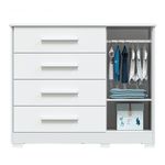 Cômoda Infantil Charlô 1 Porta 4 Gavetas - Móveis Peroba Branco BrilhoA Cômoda Charlô 1 Porta é um produto 100% MDF e possui pintura atóxica. Seu caixote é em chapa de 12 mm, enquanto o tampo superior, as frentes e as molduras são em chapa de 15 mm de espessura. Seus pés são injetados em plástico de alta resistência. Os puxadores são fabricados em MDF revestido com papel melamínico. Possui cabideiro metálico, gavetas com corrediças telescópicas e porta com detalhe em PETG cristal. Aceita adaptação de kit divisórias de gavetas (vendido separadamente).MedidasAltura (cm) 102,6Largura (cm) 120,3Profundidade (cm) 50,3Material PrincipalMDFMaterial dos FundosHDFAcabamento PrincipalVerniz UVLimpeza e ConservaçãoPara limpeza utilizar somente pano limpo e macio, ligeiramente umedecido em água (apenas o bastante para remover a poeira), seguido de um pano seco.Necessita de MontagemSimComplexidade da MontagemAlta: deve ser montado por um montador especializado.Qtd de Prateleiras2Material da PrateleiraMDFEscala de Brilho da PrateleiraSemibrilhoPeso Máximo por Prateleira (kg)5Qtd de Gavetas4Acabamento da GavetaPintura UV e Fita de BordoTipo de Puxador da GavetaPerfil externoMaterial do Puxador da GavetaMDF revestidoObservações:- Todos os produtos têm três (03) meses de garantia fornecida pelo fornecedor- As imagens são meramente ilustrativas, os objetos que ambientam as fotos não acompanham o produto.- Pode haver alguma diferença de tonalidade entre a foto e o produto, devido ao tratamento de imagens e a calibração do monitor- A entrega é realizada por transportadora, não nos responsabilizamos, no ato da entrega por desmontagens, subir escadas/elevadores ou transporte por guincho para apartamentos- Eventuais despesas são de responsabilidade do cliente- Confira as dimensões dos volumes e certifique-se de que passará normalmente por supostos elevadores, portas, escadas ou corredores- Ao receber a mercadoria, verifique as condições da embalagem, caso haja alguma avaria, entre em contato com nosso SAC- Nossa empresa não se responsabiliza pela montagem dos produtos, mas todos os produtos possuem manual de montagem. Recomendamos que a montagem seja feita por profissional de sua confiança.
