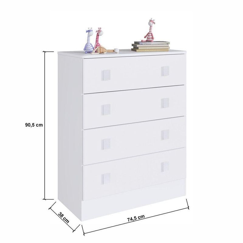 Cômoda Infantil Em Mdp 15mm 4 Gavetas Percasa BrancoApresentamos as elegantes e funcionais comodas da nossa linha, perfeitas para quem busca organizacao sem abrir mao do estilo contemporaneo. Com design moderno e refinado, oferecemos diversos modelos para atender as suas necessidades.As comodas possuem gavetas com corredicas telescopicas que suportam ate 4 kg de peso interno, proporcionando praticidade e seguranca no dia a dia. Confeccionadas com materiais de alta qualidade, sao produzidas com paineis 100 MDP de 15 mm e acabamento em pintura LACCA atoxica, garantindo mais seguranca e durabilidade. Esses moveis unem sofisticacao e funcionalidade, transformando qualquer ambiente, seja residencial ou comercial, em um espaco aconchegante e organizado. Alem disso, sua montagem e simples e acompanha um manual detalhado com instrucoes passo a passo e todos os acessorios necessarios. Deve ser feita com pano macio e seco ou levemente umedecido com agua e sabao neutro. Nao devem ser utilizados abrasivos como palha de aco e objetos cortantes. Caracteristicas: Marca: Percasa Modelo: Infantil Material: MDP 15 mm Acabamento: Lacca Quantidade de Gavetas: 04 Tipo de Corredicas: Telescopica Quantidade de Puxadores: 08 Tipo de Puxadores: PVC Peso Recomendado: 20 kg/2 kg Borda: Papel Conteudo da Embalagem: 01 Comoda Infantil em MDP 15mm 4 Gavetas Percasa 01 Kit de Ferragens Completo 01 Manual de Montagem Detalhado Dimensoes: Altura: 90,5 cm Largura: 74,5 cm Profundidade: 38 cm Peso: 27,8 kg Garantia do Fornecedor: 03 Meses.