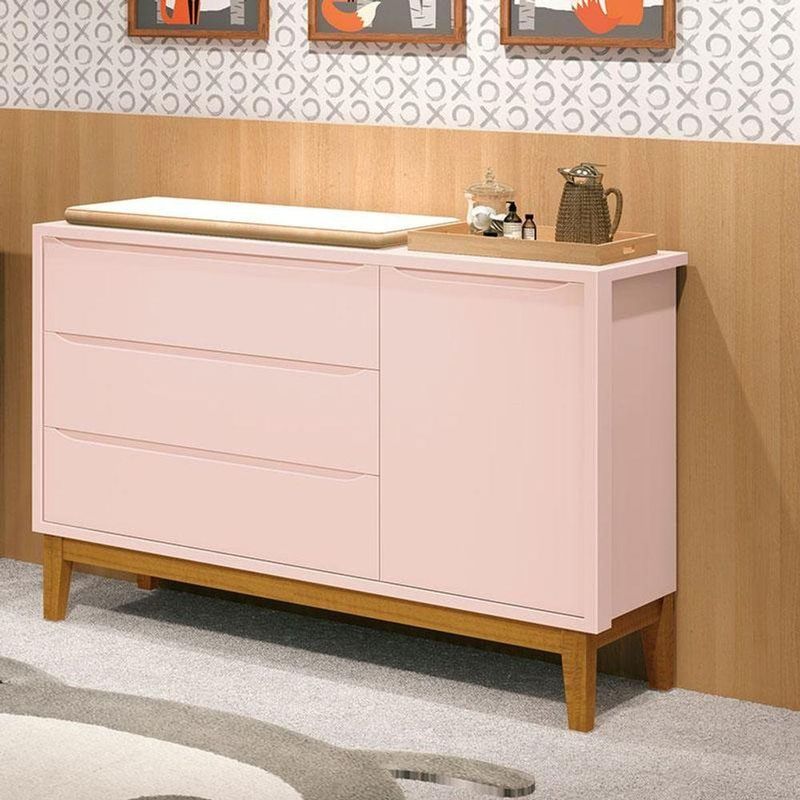 Cômoda Infantil New Classic Rosa Com Pés Madeira - RellerCômoda Infantil New Classic com Porta Rosa com Pés Madeira – RellerQuando chega o momento de comprar os móveis para o bebê, procuramos modelos que atendam a todas as nossas expectativas e necessidades. Pensando nisso, apresentamos a você a Cômoda New Classic com 01 Porta, fabricada pela Reller com lindo design na cor Rosa e pés Amadeirados. Para lhe proporcionar amplo espaço para guardar roupas e acessórios e facilitar a vida da mamãe na hora de deixar todos os itens do bebê organizados. Confira mais informações a seguir!Características Técnicas: - Desenvolvido em MDF - Sistema de pintura utiliza tinta atóxica, que não faz mal a saúde do bebê - Pintura e acabamento em U.V na cor Rosa - Possui 01 porta lisa - 01 prateleira interna - 03 gavetas com corrediças telescópicas, que deslizam livres de enrosco - Puxadores embutidos - Pés amadeirados desenvolvidos em madeira maciça, estilo retro - Maior organização e praticidade - Lindo designDimensões: Altura: 91 cm Largura: 133 cm Profundidade: 46 cmObs: Não realizamos a montagem dos produtos, porém acompanha manual de instruções.