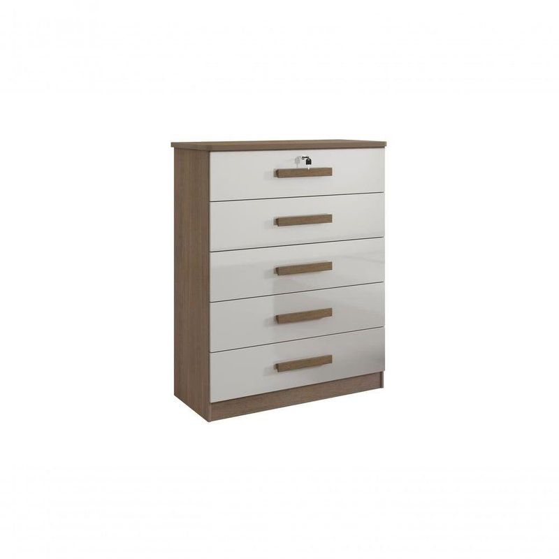 Cômoda Ipanema 5 Gavetas - D Doro Castanho/off WhiteA Cômoda Ipanema é uma peça elegante que combina funcionalidade e estilo. Com uma estrutura robusta em MDP, ela oferece cinco gavetas espaçosas com puxadores em madeira e sistema de corrediças telescópicas, garantindo segurança e facilidade no armazenamento de seus pertences. Seu design em cinamomo e off white traz um toque sofisticado ao ambiente, ideal para manter a organização do seu quarto.Medidas:Largura: 0.85mProfundidade: 0.44mAltura: 1.16mCaracterísticas:- 5 gavetas- Tampo de MDF 25mm- Corrediça telescópica 40cm- Profundidade da gaveta 40cm- Abertura total da gaveta- Gaveta com chave- Produzido com chapa de 15mm e 25mm- Pé opcional- Puxadores de madeiraObservações:- Todos os produtos têm três (03) meses de garantia fornecida pelo fornecedor- As imagens são meramente ilustrativas, os objetos que ambientam as fotos não acompanham o produto.- Pode haver alguma diferença de tonalidade entre a foto e o produto, devido ao tratamento de imagens e a calibração do monitor- A entrega é realizada por transportadora, não nos responsabilizamos, no ato da entrega por desmontagens, subir escadas/elevadores ou transporte por guincho para apartamentos- Eventuais despesas são de responsabilidade do cliente- Confira as dimensões dos volumes e certifique-se de que passará normalmente por supostos elevadores, portas, escadas ou corredores- Ao receber a mercadoria, verifique as condições da embalagem, caso haja alguma avaria, entre em contato com nosso SAC- Nossa empresa não se responsabiliza pela montagem dos produtos, mas todos os produtos possuem manual de montagem. Recomendamos que a montagem seja feita por profissional de sua confiança.