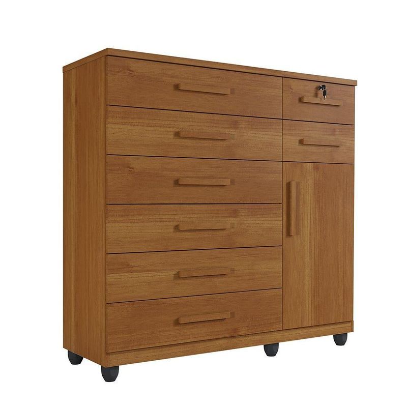 Cômoda New Vitoria Com Porta E 8 Gavetas Benetil CinamomoProcurando um móvel prático e funcional para o quarto? A Cômoda Vitória é excelente! Ela oferece conforto e comodidade. As oito gavetas contam com amplo espaço interno, além de ótima profundidade, deixando tudo mais organizado. Além disso, possuem corrediças telescópicas e chave em uma das gavetas. Os puxadores são madeirados, proporcionando um ótimo acabamento ao móvel. É ideal para deixar o quarto mais prático e bonito!Características:Marca: BenetilEstilo: ModernoOrigem do produto: NacionalMaterial principal: MDPAmbiente principal: QuartoEscala de Brilho: FoscoPossui gavetas: Sim, 8.Possui chaves: SimTipo de Corrediça: TelescópicaTipo de Puxador: MadeiradoPossui portas: SimPossui prateleira: Sim, interna.Cabideiro: NãoNecessita Montagem: SimDimensões do Produto:Altura: 137 cmLargura: 122,5 cmProfundidade: 45 cmPeso: 71 kgGarantia do Fornecedor: 3 mesesRecomendações de uso: a limpeza deve ser feita com um pano levemente umedecido.