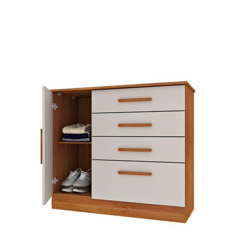 Cômoda Para Quarto Com Sapateira 4 Gavetas - Chicago-cinamomo/off White - Tcil MóveisCômoda para Quarto com Sapateira 4 Gavetas - Chicago-Cinamomo/Off White - Tcil MóveisCom a Cômoda Chicago seu quarto estará completo e seus pertences bem organizados, uma aliada na organização de seu quarto. Fabricada em MDP, possui 4 gavetas com corrediças telescópicas, sapateira na lateral com prateleira e puxadores em MDF. As corrediças telescópicas são feitas de aço e por isso são mais resistentes e duráveis, permitindo um deslize suave e uma abertura total da gaveta sem risco.Agora é só combiná-la com seu mobiliário e conquistar o quarto dos seus sonhos!Faz parte deste anúncio:1 Cômoda para Quarto com Sapateira 4 Gavetas - Chicago - Tcil MóveisObs: Objetos de decorações não incluso.Particularidades da Cômoda:Características:- Produto fabricado em MDP;- 4 gavetas com corrediças telescópicas;- Sapateira lateral com prateleira;- Puxadores em MDF;- Tampo em MDF 25mm;Dimensões:Altura: 91,5 centímetrosLargura: 1,04 metrosProfundidade: 44,8 centímetrosInformações Importantes:.- Produtos podem apresentar diferenças de tonalidades entre a foto na tela e o produto real, devido a calibração de cor de tela.- Limpar com flanela ou pano macio. Não utilizar álcool. Não utilizar produtos abrasivos ou corrosivos.- Nós prezamos pela qualidade da em primeiro lugar, trabalhamos com transportadoras altamente selecionadas e os melhores materiais de embalagem.- A montagem é de total responsabilidade do comprador. Antes de comprar, verifique o espaço disponível para a montagem.- Certifique-se de que o produto caiba em elevadores e vãos de escadas, não fazemos içamentos. Quaisquer despesas deste tipo ficam a cargo do cliente- Garantia de 3 meses contra de fabricação.- Ao receber o produto verificar as condições do mesmo no ato da . Caso haja algum dano relatar no de a ser assinado e entrar em com a o mais rápido possível.