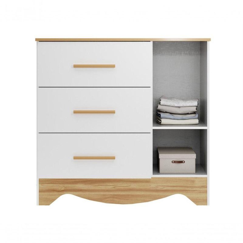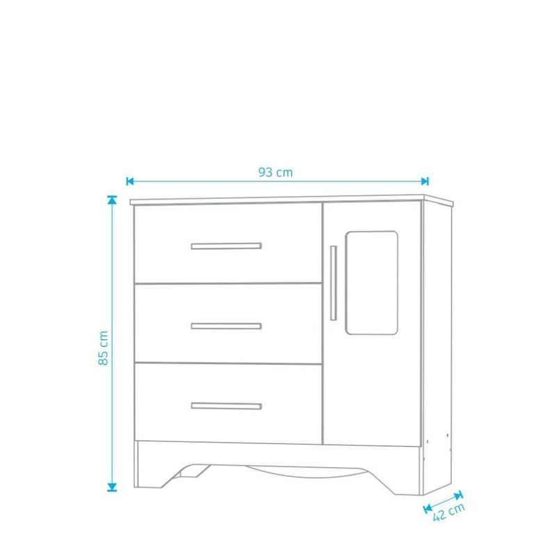 Cômoda Popy Retro 1 Porta 3 Gavetas - Moveis Peroba Amendoa/brancoA Cômoda Popy Retrô 1 Porta Plus é um produto 100% MDF e possui pintura atóxica. Sua estrutura é fabricada em chapa de 12 mm, sendo seu tampo superior em chapa de 15 mm. Possui puxadores em MDF revestido e gavetas com corrediças telescópicas. Acompanha dois modelos de rodapés, que podem ser definidos no momento da montagem, e sua porta possui detalhe com PETG cristal.MedidasAltura: 89,4 cmLargura: 92,9 cmProfundidade: 42,0 cmMaterial PrincipalMDFMaterial dos FundosHDFAcabamento PrincipalVerniz UVLimpeza e ConservaçãoPara limpeza utilizar somente pano limpo e macio, ligeiramente umedecido em água (apenas o bastante para remover a poeira), seguido de um pano seco.Qtd de Prateleiras2Material da PrateleiraMDFEscala de Brilho da PrateleiraSemibrilhoPeso Máximo por Prateleira (kg)5Qtd de Gavetas3Acabamento da GavetaPintura UV e Fita de BordoTipo de Puxador da GavetaPerfil externoMaterial do Puxador da GavetaMDF revestidoNecessita de MontagemSimComplexidade da MontagemAlta: deve ser montado por um montador especializado.Observações:- Todos os produtos têm três (03) meses de garantia fornecida pelo fornecedor- As imagens são meramente ilustrativas, os objetos que ambientam as fotos não acompanham o produto.- Pode haver alguma diferença de tonalidade entre a foto e o produto, devido ao tratamento de imagens e a calibração do monitor- A entrega é realizada por transportadora, não nos responsabilizamos, no ato da entrega por desmontagens, subir escadas/elevadores ou transporte por guincho para apartamentos- Eventuais despesas são de responsabilidade do cliente- Confira as dimensões dos volumes e certifique-se de que passará normalmente por supostos elevadores, portas, escadas ou corredores- Ao receber a mercadoria, verifique as condições da embalagem, caso haja alguma avaria, entre em contato com nosso SAC- Nossa empresa não se responsabiliza pela montagem dos produtos, mas todos os produtos possuem manual de montagem. Recomendamos que a montagem seja feita por profissional de sua confiança.