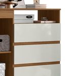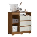 Cômoda Quarto Com 1 Porta Sapateira 97cm Tayna Atacama/off White A09 - D'rossiA Cômoda Sapateira Tayna 97 cm na cor Atacama/Off White é a escolha ideal para quem busca funcionalidade e charme em um só móvel. Com design clássico e acabamento sofisticado em pintura UV ela traz elegância ao ambiente. Seu tamanho compacto se adapta facilmente a quartos, closets ou até mesmo halls e áreas de apoio. Sua estrutura é produzida em MDP de 12 e 15 mm, garantindo resistência e durabilidade. Conta com três gavetas espaçosas, que deslizam com suavidade, uma porta e um nicho aberto prático para objetos de uso frequente. Internamente, possui ainda uma prateleira para facilitar a organização. Outro diferencial é o espaço inferior que funciona como sapateira, ideal para manter os pares sempre organizados e de fácil acesso. Os pés em PVC oferecem sustentação e facilitam a limpeza do ambiente. Compacta, funcional e cheia de estilo, a cômoda Tayna é perfeita para otimizar a organização do seu espaço com elegância. Dimensões do Produto: Altura: 100 cm Largura: 97 cm Profundidade: 45 cm Peso: 36 kg Especificações do Produto: Material da Estrutura: MDP 12 e 15mm Pintura: Pintura UV Acabamento: Verniz Escala de Brilho: Brilho Peso Suportado: 40 kg distribuídos Possui Gavetas: Sim Quantidade de Gavetas: 3 Gavetas Tipo de Corrediça: Metálica Telescópica Possui Portas: Sim Quantidade de Portas: 1 Porta Tipo de Porta: Convencional Material das Dobradiças: Metálica Possui Nichos: Sim Quantidade de Nichos: 1 Nicho aberto Possui Prateleiras: Sim Quantidade de Prateleiras: 1 Prateleira Interna Possui Puxadores: Não Possui Sapateira: Sim Possui Espelho: Não Possui Cabideiro: Não Possui chave em Gavetas ou Portas: Não Possui Pés: Sim Material dos Pés: PVC Diferenciais: Design clássico; Amplo espaço interno; Modelo compacto. Sistema de Montagem: Cavilhas e Parafusos. Manual de Montagem: Sim Complexidade da Montagem: Média Montagem: Recomendamos que seja feita por um profissional. Garantia: 90 dias contra defeito de fabricação Instruções de Limpeza: Utilizar um pano limpo e levemente úmido Quantidade de Volumes 1 Caixa Medida das Embalagens Caixa 1: 102 x 45,5 x 17,5 cm Entrega: É feita somente até o térreo ou portaria. Confira sempre as medidas das embalagens para assegurar que o produto passe por portas e escadas do local.