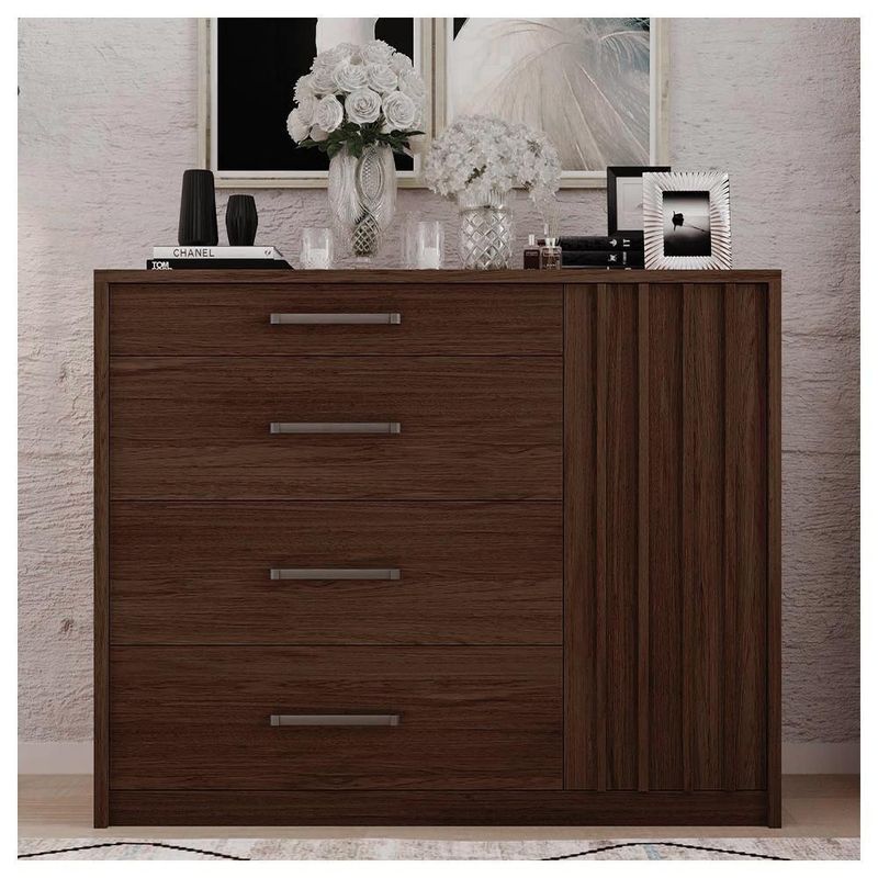 Cômoda Sapateira 1 Porta 4 Gavetas Marrom Palacius CaemmunA Cômoda Palacius è moderna, funcional e pratica. Acompanha 4 Gavetas e 1 Porta para melhor armazenamento além de um design ideal para o seu ambiente de descanso. Feito em MDP e HDF possui maior resistência e durabilidade ao móvel.Dimensões do produto montado:Altura: 110,5 cmLargura: 136 cmProfundidade: 45 cmPeso: 63kgCômoda Palacius- Possui 4 Gavetas- Possui 2 Nichos- Possui 1 Tampo- Possui 1 PortaPeso Suportado- Gavetas: 3 kg- Nicho Inferior: 5 kg- Nicho Superior: 3 kg- Tampo :10 kg- Acompanha manual de montagem- Tonalidade do Produto: Havana Fosco- Estrutura em MDP de 15mm e 25mm de espessura. HDF de 3mm de espessura.- Garantia 90 dias contra de fabricação- Este móvel chegará em sua casa separado em 2 volumesDimensões da embalagem:(1º Volume)Altura: 14 cmLargura: 116 cmComprimento: 45 cm(2º Volume)Altura: 13 cmLargura: 144 cmComprimento: 48 cmRecomendações de limpeza:- Limpar com pano macio, seco ou úmido, sem uso de produtos abrasivos. Pois, podem trazer danos ao produto.Sobre a :- As transportadoras contratadas, não realizam em apartamentos. Realizando assim a na portaria do prédio.*Produto segue desmontado, montagem por conta do comprador.*Imagens do produto são meramente ilustrativas. Tonalidade: MARROM | COR: HAVANA