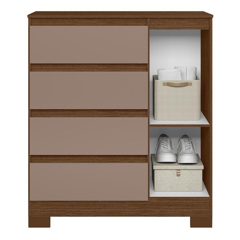 Cômoda Sapateira Olímpia 1 Porta E 4 Gavetas Nogueira/capuccino - Móveis AlbatrozCômoda Sapateira Olímpia 1 Porta e 4 Gavetas - Móveis AlbatrozA Cômoda Sapateira Olímpia 1 Porta e 4 Gavetas da Móveis Albatroz é a escolha ideal para quem deseja mais organização sem abrir mão do estilo. Produzida em MDP com pintura UV, oferece durabilidade e um acabamento moderno. Possui uma porta com dobradiças metálicas e prateleira interna para melhor aproveitamento do espaço, além de quatro gavetas com corrediças telescópicas e puxadores estilo pega que garantem praticidade no uso. Os pés em ABS proporcionam estabilidade, enquanto o amplo espaço interno mantém tudo sempre em ordem.ESPECIFICAÇÕES:- Estrutura em MDP- Pintura UV- 1 Porta- Dobradiças metálicas- Prateleira interna- 4 Gavetas- Puxadores estilo pega- Corrediças telescópicas- Pés em ABS- Amplo espaçoDimensões:Tamanho do produto (L x A x P): 84 x 97 x 40 cmGarantia: 3 mesesMontagem: O Produto vai desmontado com manual e todos acessórios. Recomendamos que a montagem seja feita por um profissionalRecomendação de Limpeza: Utilize pano levemente úmidoObservações:- A LOJA se responsabilizará pela entrega dos produtos até aonde as rodovias alcançam, entregas fluviais ou aéreas devem ser cotadas a parte.- As imagens são ilustrativas, não acompanham objetos de decoração.- Pode haver alguma diferença de tonalidade entre a imagem e o produto, por conta do tratamento de imagens e a calibração de cores da sua tela.- A montagem será de responsabilidade do comprador. Entregamos até a porta de entrada da residência ou até a portaria do condomínio. Não nos responsabilizamos, no ato da entrega, por subir escadas/elevadores ou transporte por guincho em apartamentos. Eventuais despesas são de responsabilidade do comprador.- Confira as dimensões do produto no momento da compra e certifique-se de que passará normalmente por supostos elevadores, portas, escadas e/ou corredores de sua residência.Para mais informações, acesse nossa Central de Atendimento.Altura: 97 | Largura: 84 | Inclui manual de montagem: Sim | Requer montagem: Sim | Profundidade: 40 | Quantidade de caixas de embalagem: 1 Nogueira/Capuccino