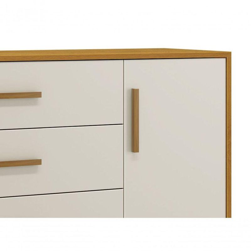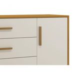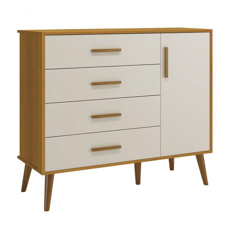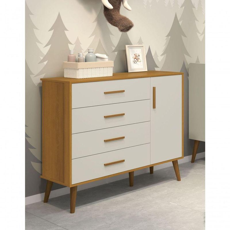 Cômoda Sapateira Retrô Isis Areia Fosco Com Savana Fosco - MoveisaquiEvidênciando um ar retrô com o modelo de seus pés em madeira maciça, a Cômoda Sapateira Retrô Isis - MóveisAqui possui um desing clean que combina com vários estilos de decoração. É perfeita para a organização das roupinhas e acessórios do seu baby, proporciona um mega espaço para armazenamento e com divisória interna, para que a organização do dia-a-dia possa ser mais fácil. Possui puxadores em MDF envelopado.Dimensões do Produto Montado:Altura: 91 cmLargura: 133 cmProfundidade: 46 cmObservações:- 04 gavetas;- 01 porta;- 01 prateleira interna;- Corrediças Telescópicas;- Puxadores em MDF;- Sistema anti Tombamento;- Pés na cor Madeira;- Pintura ultravioleta com acabamento fosco.