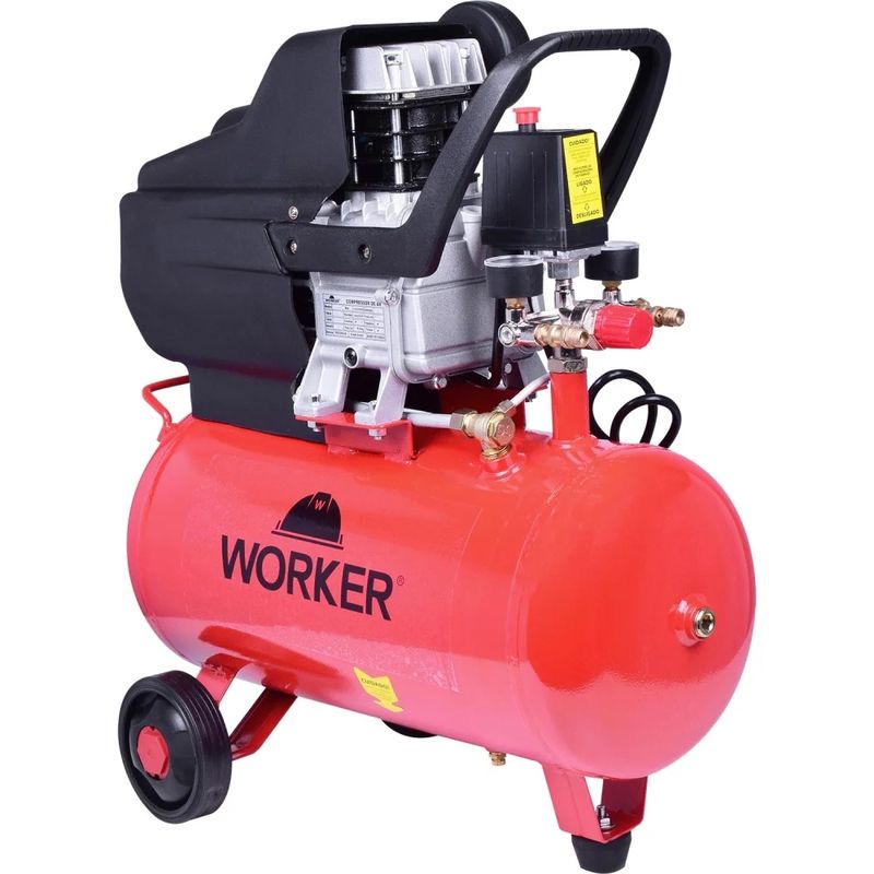 Compressor de Ar 2,0HP 24L 8Bar para Diversas Aplicações Procurando um compressor de ar robusto, confiável e com excelente custo-benefício? O Compressor de Ar Worker 2,0HP 24L 8Bar é a solução ideal para suas necessidades. Projetado para máxima produtividade e durabilidade, este compressor certificado oferece alta performance em diversos ambientes, desde oficinas e borracharias até pequenos trabalhos domésticos e artesanato. Sua construção robusta e componentes testados garantem uma longa vida útil, enquanto a tecnologia inovadora assegura eficiência e segurança. Com duas saídas de ar, você pode utilizar diversas ferramentas pneumáticas simultaneamente, otimizando seu tempo e trabalho. Este compressor Worker é a escolha inteligente para quem busca qualidade, desempenho e economia. Especificações Potência do Motor: 2HP Capacidade do Tanque: 24L Pressão Máxima: 8Bar Cilindrada: 0,10m³ Velocidade: 2800rpm Número de Saídas de Ar: 2 Itens Inclusos Compressor De Ar 2,0Hp 24L 8Bar 8,4Pcm 220V Worker Perguntas Frequentes (FAQ) Pergunta: Qual a voltagem do compressor?Resposta: Este modelo opera em 220V. Pergunta: O compressor acompanha algum acessório?Resposta: Não, este compressor não acompanha acessórios. Pergunta: Qual o período de garantia do produto?Resposta: A garantia legal é de 90 dias. Pergunta: Qual a cilindrada do compressor?Resposta: A cilindrada é de 0,10m³.