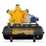 Compressor de ar alta pressão (175lbf/pol²) 2 estágios com rolamento cônico dando melhor ajuste no eixo do virabrequim, design robusto e alta eficiência. São indicados para atividades de alta exigência em empresas de grande porte como fábricas, usinas, oficinas mecânicas e também em fazendas e muito mais! 03998 trifásico (fechado) IP55 Informação adicionalDeslocamento Teórico 1700 l/min – 60 pcm Pressão máxima 175 psi – 12 bar Reservatório 360L Nº de Cilindros 5 Nº de Estágios 2 RPM do Bloco 720 Motor Elétrico 15hp – 11,2kW – 4P Óleo Lubrif Volume (ml) 5.000 Peso do Cabeçote 171 kg Diâmetro Polia 220 Diâmetro do Volante 549 mm Correia B97 DescriçãoAcompanha o Compressor de ar alta pressão 60 pcm 360 litros:– Bloco compressor em ferro fundido com sistema de trabalho em W.– Reservatório horizontal– Transmissão por correia– Sistema de proteção dupla nas partes girantes do compressor– Motor trifásico, opção contínuo ou intermitente– Válvula de retenção– Dreno (válvula purgadora)– Pressostato– Manômetro– Válvula de segurança– 3 Filtros de ar– Válvulas concêntricas– Aliviador centrífugo– Prontuário de vaso de pressão– Ficha de manutenção e troca de óleo– Rede nacional de Assistência Técnica– Manual de instruções– Certificado de garantia Regime contínuo– Válvula piloto– Válvula canhão– Abafador válvula canhãoImportante: Nossos compressores de ar chegam ao usuário com Prontuário de Vaso de Pressão, elaborado conforme estabelece a norma NR-13 do MT, atestado por engenheiro mecânico responsável registrado no CREA.O prontuário identifica o produto, os dados de projeto, os materiais utilizados, os aspectos construtivos, os procedimentos de inspeção e os dispositivos de segurança.Portanto, todos os reservatórios são testados hidrostaticamente garantindo a segurança dos produtos.A fabricação dos reservatórios CHIAPERINI atende também as especificações de projeto da norma ASME (Sociedade Americana de Engenheiros Mecânicos).A CHIAPERINI INDUSTRIAL LTDA garante esse produto ao cliente contra qualquer defeito de fabricação no prazo de 12 (doze) meses, sendo:– Garantia legal de 3 meses contra defeito de fabricação – Garantia estendida de 9 meses – Garantia total de 12 meses