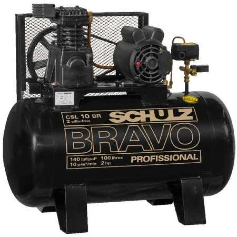Compressor Schulz CSL 10 BRA linha BRAVO oferece uma variedade de modelos para aplicações profissionais e industriais. São produtos robustos, que incorporam os últimos avanços tecnológicos e conceitos construtivos de padrões atuais. Apresentam ainda excelentes resultados de efetividade volumétrica, gerando mais desempenho e confiabilidade.Especificações Técnicas:Deslocamento Teórico: 10 pés³ - 283 l/minVolume do Reservatório: 100LTempo de enchimento: 5 Minutos e 10 segundosPressão de Operação Mínima: 100 lbf/pol² - 6,9 barPressão de Operação Máxima: 140 lbf/pol² - 9,7 barMotor Potência: 2 hp - Nº de Pólos: 2RPM Bloco: 860Unidade Compressora:Nº de Estágios 1Nº de Pistões: 2Ruído dB(A): -Dimensões:Largura 800 mmAltura 480 mmComprimento 850 mmPeso 72 KgCaracterísticas:Acionamento com Chave de PartidaLubrificado a óleoTrifásico 220/380vPistãoCilindros em LinhaEquipado com:Prontuário do Teste Hidrostático.Reservatório fabricado de acordo com a Norma NR13Manutenção:Drenagem do ReservatórioTroca de ÓleoLimpeza do Filtro de ArReaperto da CorreiaGarantia:12 Meses contra defeito de fabricação.Referência de Fábrica:921.7851-0