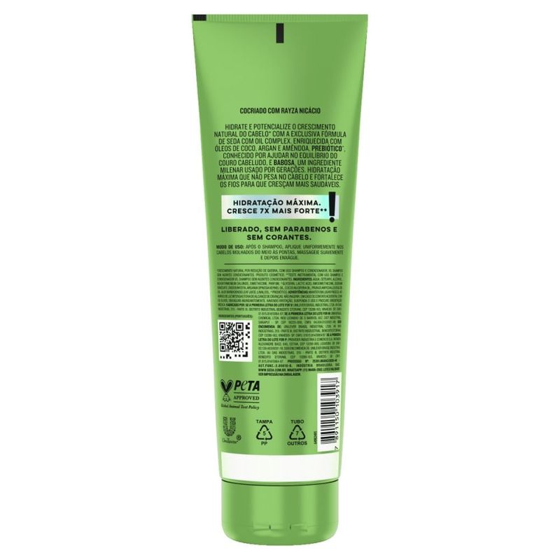 Condicionador Seda Babosa Prebiotic 250ml Hidratação leve, desembaraço fácil e fios mais macios! O Condicionador Seda Babosa Prebiotic 250ml foi desenvolvido para complementar a limpeza dos cabelos, proporcionando hidratação na medida certa sem pesar. Sua fórmula com babosa e prebióticos ajuda a selar as cutículas, deixando os fios mais suaves, soltos e com brilho natural. O que é e para que serve? O Condicionador Seda Babosa Prebiotic é indicado para hidratar, desembaraçar e suavizar os cabelos após a lavagem. Ele ajuda a repor a umidade dos fios, melhora a maleabilidade e contribui para um couro cabeludo equilibrado, sendo ideal para uso diário em todos os tipos de cabelo. Benefícios e Diferenciais Hidratação leve que não pesa nos fios; Facilita o desembaraço imediato; Com babosa de ação hidratante; Prebióticos que ajudam no equilíbrio do couro cabeludo; Deixa os cabelos macios, soltos e brilhantes; Ideal para uso frequente; Fragrância fresca e agradável. Como usar Após lavar os cabelos com o shampoo, aplique o condicionador no comprimento e pontas dos fios úmidos. Massageie suavemente, deixe agir por alguns instantes e enxágue bem. Para melhores resultados, utilize a linha completa Seda Babosa Prebiotic. Principais ativos e como atuam A fórmula contém Babosa (Aloe Vera), conhecida por sua ação hidratante e suavizante, associada a Prebióticos, que auxiliam no equilíbrio do couro cabeludo. Juntos, promovem fios mais hidratados, macios e com aparência saudável. Advertências Uso externo; Evite contato com os olhos; em caso de contato, enxágue abundantemente; Em caso de irritação, suspenda o uso; Manter fora do alcance de crianças; Conservar em local fresco e ao abrigo da luz.