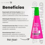 Condicionador Sem Enxágue Ego Boost 237ml Bed Head O Condicionador Sem Enxágue Ego Boost 237ml Bed Head é um leave-in multifuncional desenvolvido para cabelos danificados e com pontas duplas. Sua fórmula exclusiva proporciona hidratação, brilho e proteção, deixando os fios mais saudáveis e fáceis de pentear. Características principais: Reparação de pontas duplas: Atua diretamente nas pontas, selando e unindo as cutículas dos fios danificados. Hidratação intensa: Proporciona umidade aos fios, mantendo-os hidratados e macios. Brilho saudável: Deixa os cabelos com aparência brilhante e saudável. Proteção contra agressões externas: Forma uma barreira contra danos causados por fatores ambientais e tratamentos químicos. Facilidade no desembaraço: Torna os fios mais fáceis de pentear, reduzindo a quebra durante o processo. Modo de uso: Após lavar os cabelos, aplique o Condicionador Sem Enxágue Ego Boost nos fios úmidos, concentrando-se nas pontas. Não é necessário enxaguar. Penteie como de costume e deixe secar naturalmente ou utilize ferramentas térmicas conforme desejado. Composição: A fórmula do produto contém ingredientes como: Queratina Hidrolisada: Fortalece e repara a estrutura capilar. Glicerina: Atrai e retém a umidade nos fios. Propileno Glicol: Condiciona e hidrata o cabelo. Amodimeticona: Proporciona brilho e suaviza os fios. Cetrimonium Chloride: Condiciona e hidrata o cabelo. Cyclopentasiloxane: Condiciona o cabelo e melhora o brilho. Dimethicone Copolyol: Condiciona e hidrata o cabelo. Ácido Cítrico: Ajusta o pH do cabelo. Benefícios adicionais: Controle do frizz: Ajuda a controlar o frizz, mantendo os fios alinhados. Ação anti-quebra: Fortalece os fios, reduzindo a quebra durante o penteado. Aroma agradável: Deixa os cabelos com uma fragrância suave e duradoura. Com o Condicionador Sem Enxágue Ego Boost 237ml Bed Head, seus cabelos ficam mais saudáveis, hidratados e com aparência revitalizada, prontos para arrasar em qualquer ocasião. Fontes