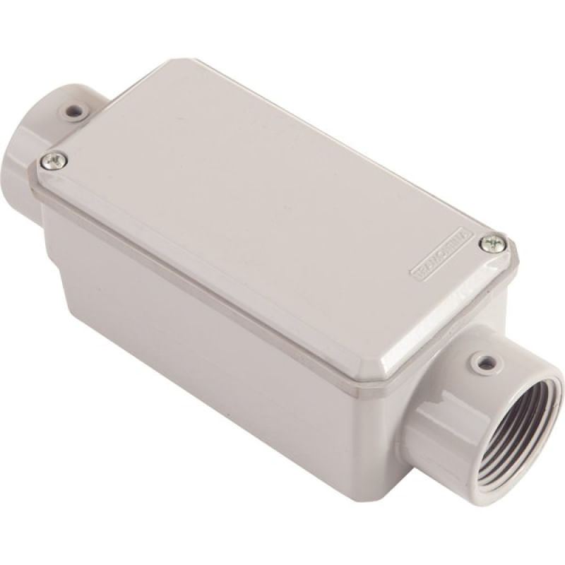 Condulete Fixo 1.1/2" Tipo C Tramontina Rosca NPT Tampa Pintura Eletrostática Tramontina - O Condulete Fixo 1. 1/2 polegadas Tipo C Tramontina com Rosca NPT com Tampa e com Pintura Eletrostática é um item indispensável para compor a fiação de indústrias, pavilhões e estacionamentos. Ele é desenvolvido em alumínio para maior proteção dos fios e devido a isso, possui elevada resistência mecânica e a corrosão. E o melhor de tudo: sua aplicação pode ser realizada de modo simples, sem necessidade de quebra de paredes. Seus projetos elétricos ficam muito melhores com a Tramontina! Características Gerais do Produto: • Modelo Formato / Tipo de entradas do Condulete: Tipo "C" • Tamanho do Condulete: 1.½" • Condulete com tampa?: Sim, com tampa • Condulete com pintura?: Sim, com pintura • Condulete com rosca?: Sim, com rosca NPT Garantia: • 90 dias de garantia legal para vícios ou defeitos de fabricação.