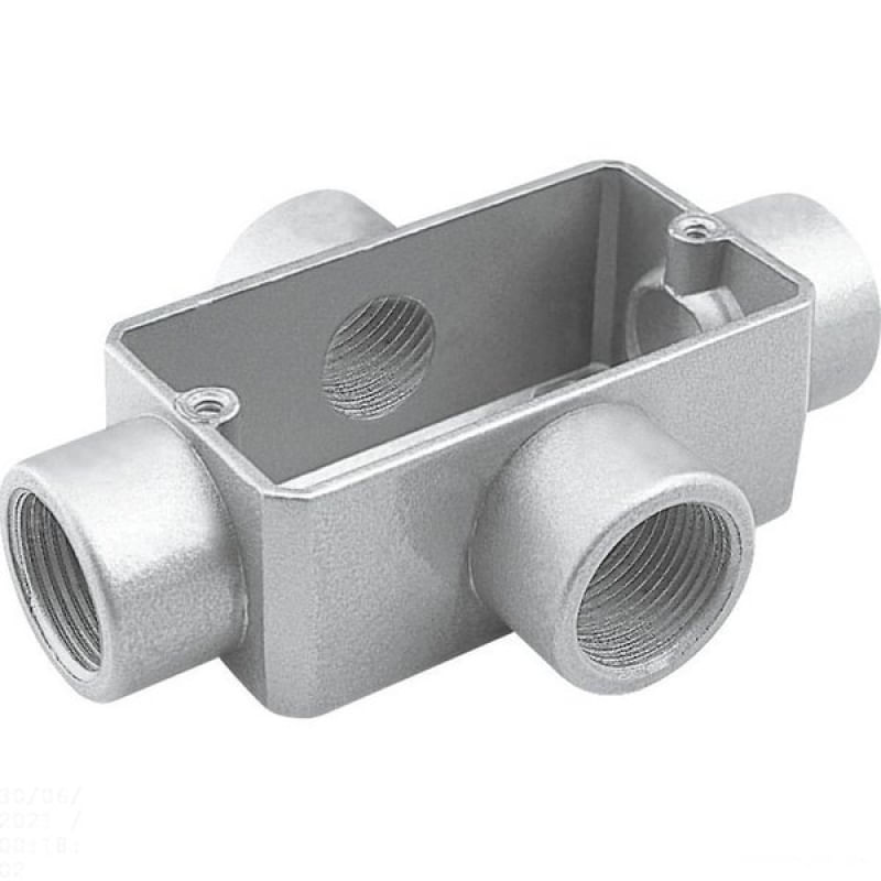 Condulete fixo 3/4" tipo "X" - sem tampa / rosca BSP / pintura eletrostáticaA pó Tramontina - Características Gerais do Produto: • Modelo Formato / Tipo de entradas do Condulete: Tipo "X" • Tamanho do Condulete: ¾" • Condulete com tampa?: Não, sem tampa • Condulete com pintura?: Sim, com pintura • Condulete com rosca?: Sim, com rosca BSP Garantia: • 1 Ano
