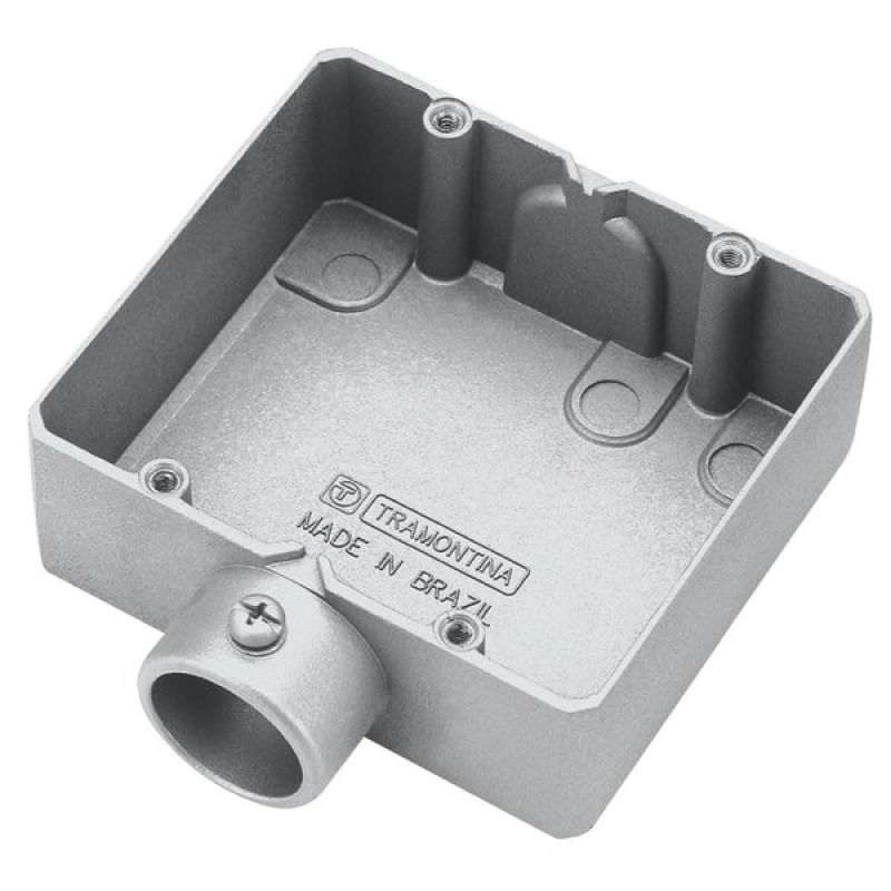 Condulete Tipo ED 3/4" Duplo Tramontina com Rosca BSP e sem Pintura Tramontina - O condulete tipo ED 3/4 polegada duplo Tramontina com rosca BSP e sem pintura foi projetado para facilitar as funções de eletricistas e profissionais elétricos em projetos aparentes.Ele pode ser utilizado em instalações residenciais, comerciais e industriais, oferecendo uma solução altamente resistente à corrosão e mecânica, pois é construído em alumínio. Com ele, não há a necessidade de quebra da parede para embutir a fiação e você garante uma execução mais ágil e prática para seus projetos! Características Gerais do Produto: Garantia: • 3 Meses