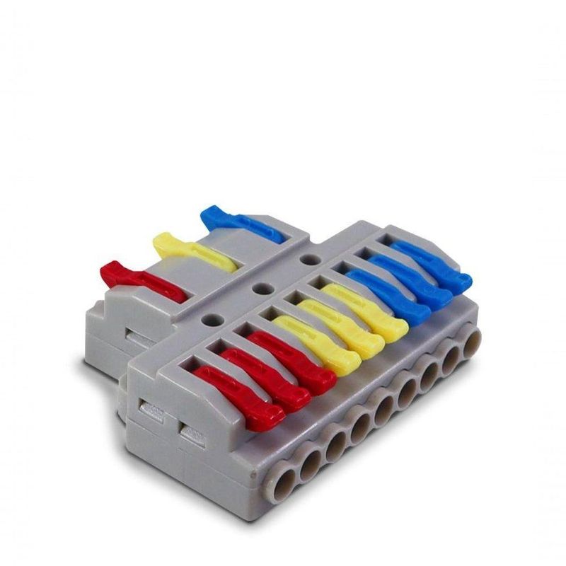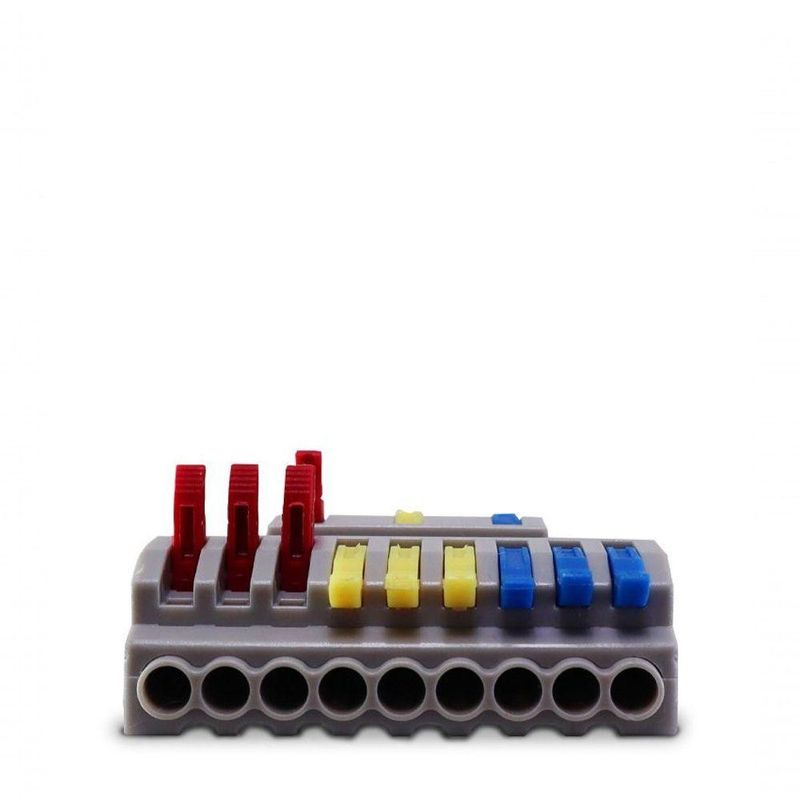 Conector De Emenda E Derivacao Automatico Kv439 3 Entradas Os conectores de emenda e derivação KV4XXX são dispositivos de fácil aplicação e instalação.Permite que você faça emendas e derivações de fios de forma rápida, prática e segura.Podem ser utilizados em conexões da fiação de veículos, locais sujeitos a vibração ou em conexões internas de fiação de eletrodomésticos,máquinas ou qualquer categoria de aparelhos elétricos com alimentação de até 600V.Em caso de necessidade os conectores podem ser reutilizados. Informações Técnicas do ProdutoCorrente Máxima32A Tensão Máxima de Operação600V Temperatura Máxima de OperaçãoAté 70°C Temperatura em Regime de Emergência100ºC Tensão Máxima de Surto4kV Cabos0,08 - 4mm² Material do CorpoNylon (PA 6.6) AntichamaSim Mola de Fixação dos CabosAço Inoxidável Aço InoxidávelLatão com Acabamento Estanhado Tipo de ConectorCA Fêmea Fixação do CaboPor Alavanca Quantidade de Conexões de Entrada2 Quantidade de Conexões de Saída6 Grau de ProteçãoIP20