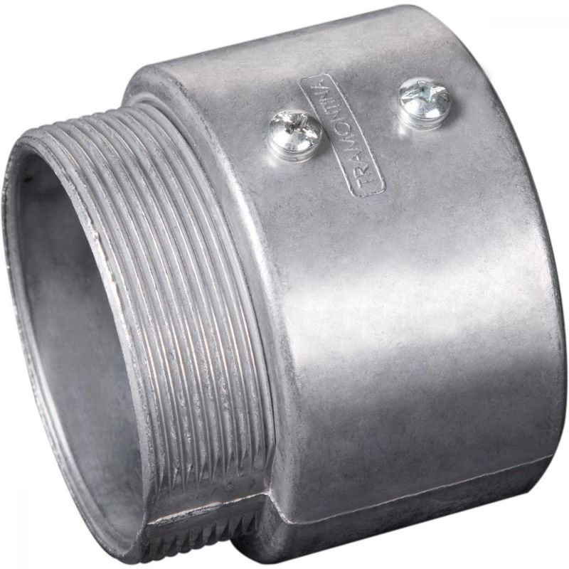Conector reto sem rosca 4" Conector reto em alumínio sem rosca (unidut cônico sem rosca BSP) e acabamento sem pintura. Possui elevada resistência mecânica e a corrosão. Solução para instalações aparentes, onde a intenção é não quebrar a parede para embutir a instalação elétrica. De execução simples para fábricas, comércio e residências. Acompanha parafuso para instalação no eletroduto. Rosca BSP.
