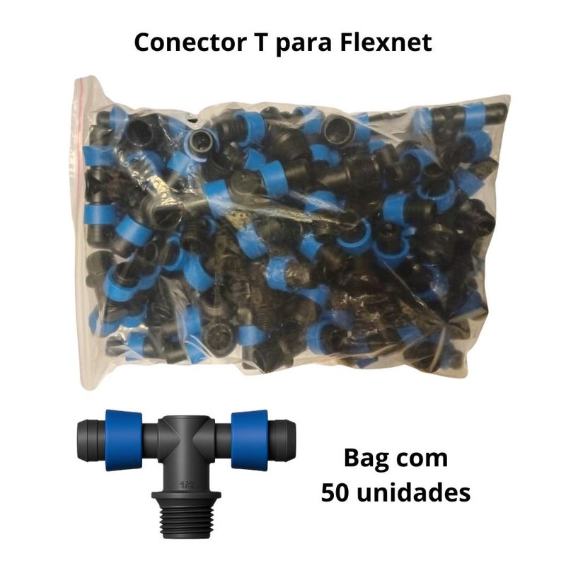 Conector Tê para Tudbo Flexnet 1/2" Roscal Macho Anel Azul – Netafim (50 un) O Conector Tê para Flexnet 1/2" com anel azul da Netafim é um componente de alta qualidade indicado para montagem de sistemas de irrigação por gotejamento com o tubo Flexnet. Ideal para realizar ramificações em T com rosca macho, esse conector garante vedação segura e prática aplicação em viveiros, estufas, hortas e jardins.Dados Técnicos:Referência: 32500-015341Tipo: Conector em T para Flexnet 1/2"Conexão: Rosca macho 1/2" para ramificaçãoMaterial: Plástico de engenharia resistente a UV e produtos químicosEmbalage Bag com 50 unidadesVantagens e Aplicações:Alta durabilidade mesmo em uso prolongado com exposição solar e agroquímicosVedação confiável para evitar vazamentos em conexões FlexnetFacilidade na montagem de redes de gotejamento com derivações em TAnel azul facilita identificação e organização do sistema de irrigaçãoIndicado para:Montagem de linhas Flexnet 1/2¿ com ramificações em TSistemas de irrigação por gotejamento em agricultura, paisagismo e horticulturaAplicações que exigem rigor hidráulico e resistência UVO Conector Tê Flexnet 1/2" com rosca macho da Netafim oferece a combinação ideal entre praticidade, durabilidade e economia para projetos de irrigação exigentes.