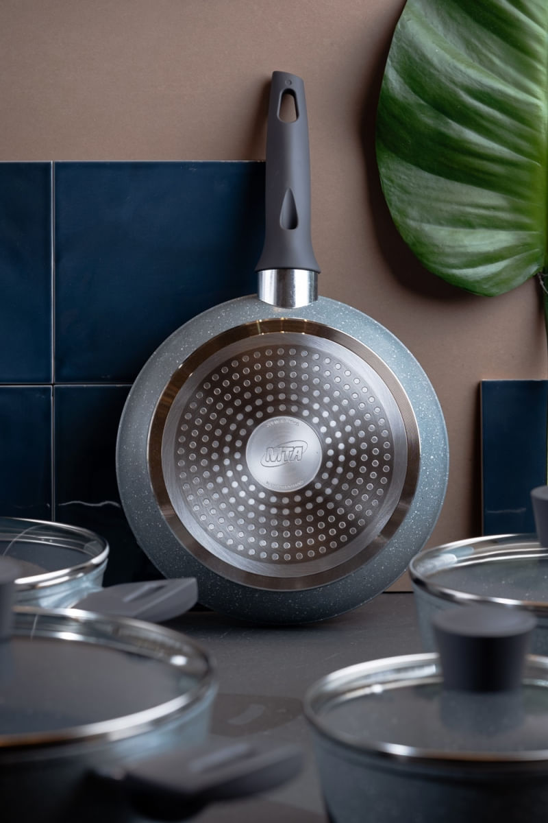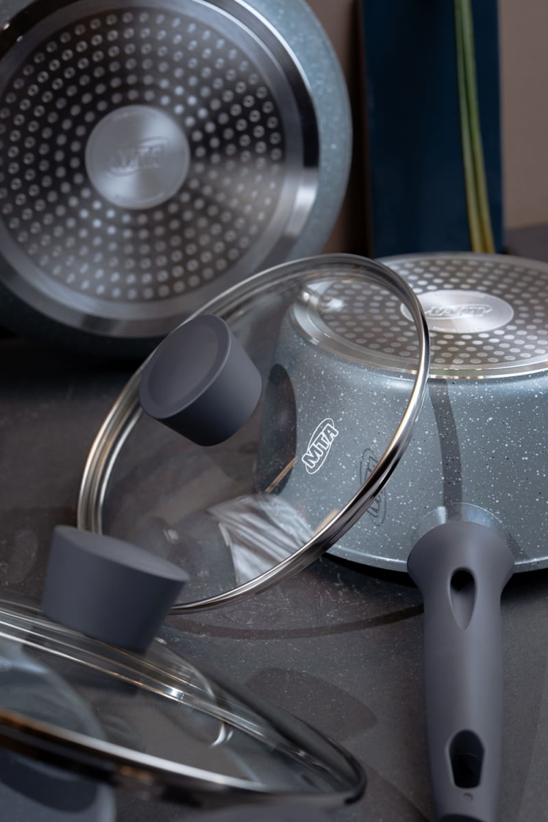 Explore o desempenho e a elegância do Conjunto Carmela Silver 3 Pçs MTA 8426, ideal para quem deseja cozinhar com praticidade e estilo. Com revestimento interno antiaderente de alta qualidade, garante preparo saudável com menos óleo e fácil limpeza, perfeito para o dia a dia. As peças são confeccionadas em alumínio resistente que assegura distribuição uniforme do calor, proporcionando cozimento eficiente e saboroso. Principais atributos: - Conjunto de 3 peças: frigideira, panela e caçarola com tampas de vidro temperado - Revestimento antiaderente durável, que evita que os alimentos grudem - Alças ergonômicas e resistentes ao calor para maior segurança no manuseio - Design moderno com acabamento marmorizado na cor silver, que valoriza sua cozinha - Compatível com fogões a gás, elétricos e vitrocerâmicos Aproveite um conjunto que une funcionalidade, durabilidade e beleza, transformando a experiência na cozinha em momentos ainda mais especiais. A escolha certa para quem busca qualidade comprovada e desempenho superior.