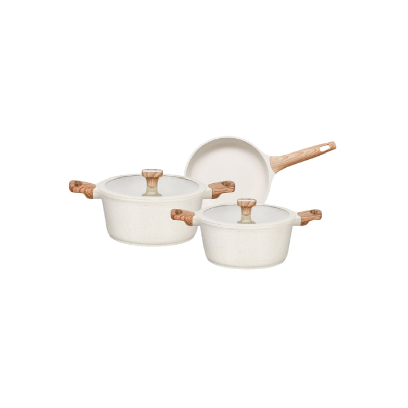 Conjunto Titanium com Revestimento Cerâmico 3 Peças MTA 8448 - Sofisticação e desempenho para sua cozinhaTransforme o preparo das suas refeições com este conjunto completo de panelas Titanium, com revestimento cerâmico antiaderente que garante cozimento uniforme e fácil limpeza. Ideal para quem busca durabilidade e saúde, o conjunto é livre de substâncias tóxicas, proporcionando segurança ao cozinhar.Principais benefícios:- Revestimento cerâmico premium que evita alimentos grudados e facilita a higienização- Estrutura em alumínio titanium leve e resistente, garantindo alta durabilidade- Pegadores com design em madeira sintética, ergonômicos e antiderrapantes- Tampa de vidro temperado que permite monitorar o cozimento sem perder calor- Compatível com fogões a gás, elétricos e vitrocerâmicosIdeal para uso diário, atende desde receitas simples até preparos mais elaborados, elevando a experiência culinária. Escolha quem valoriza qualidade e eficiência comprovadas. Estoque limitado, garanta já o seu conjunto Titanium MTA 8448 e transforme sua cozinha em um espaço moderno e funcional.