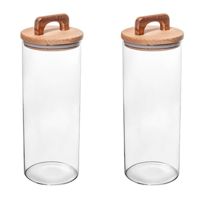 Conjunto 02 Potes De Vidro Com Tampa Hermética De Acácia 1,7l WolffConjunto 02 Potes de Vidro com Tampa Hermética de Acácia 1,7L WolffMais capacidade, mais organização, mais charme na sua cozinha!O Conjunto com 2 Potes de Vidro Wolff é perfeito para armazenar mantimentos com praticidade e sofisticação. Com capacidade de 1,25L cada, contam com tampa em madeira de acácia que agrega vedação eficiente e um toque natural à decoração. Ideais para compor bancadas e despensas com elegância. Funcionalidade e beleza caminhando juntas no seu dia a dia.Conjunto 02 Potes de Vidro com Tampa Hermética de Acácia 1,7L Wolff - Especificações TécnicasMaterial: Vidro borossilicatoMaterial da Tampa: Madeira acáciaMedidas (Diâmetro x Alt.): 10 x 28 cmCapacidade: 1,7L cadaQuantidade: 02