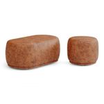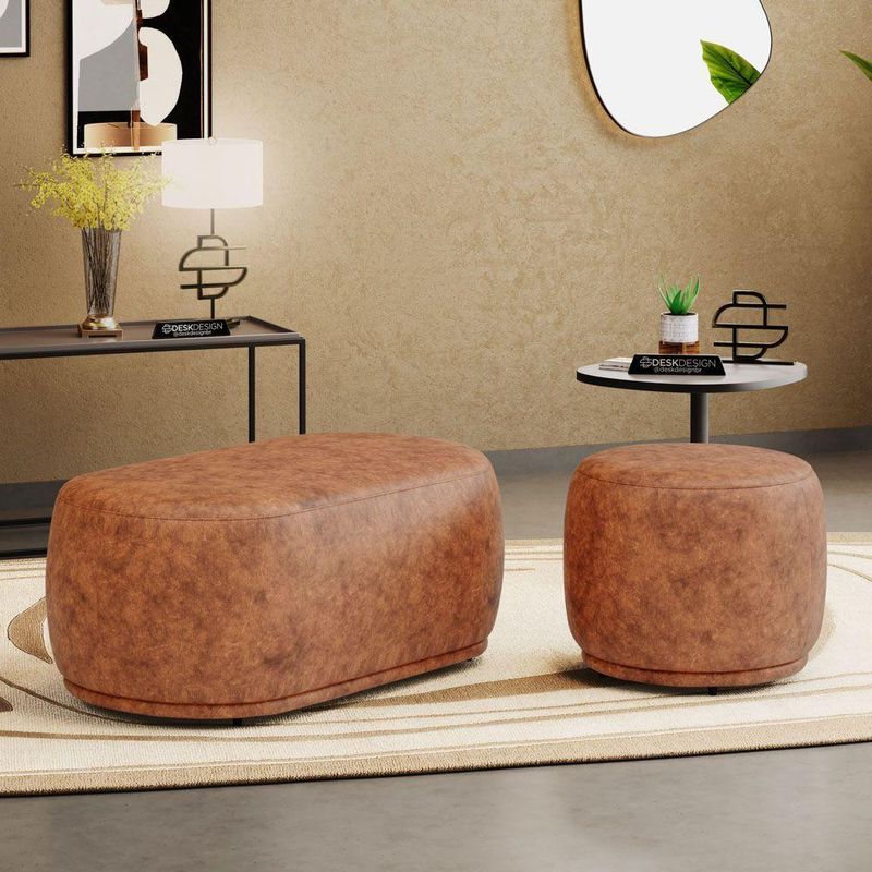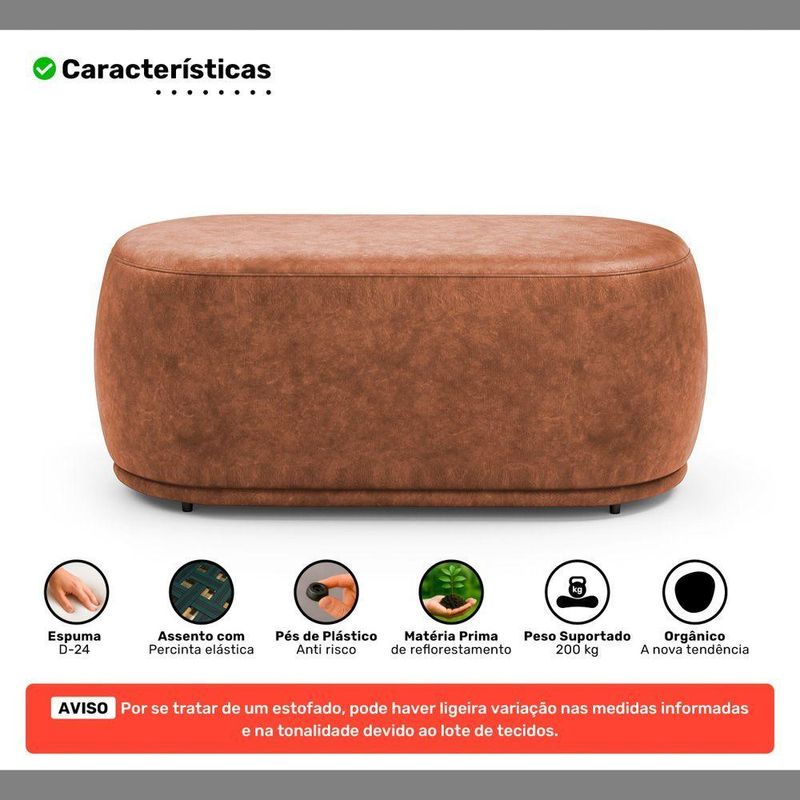 Conjunto 02 Puffs Decorativos Orgânicos Molly Couríssimo Caramelo - Desk Design Cor CarameloConjunto 02 Puffs Decorativos Orgânicos Molly - Estilo contemporâneo, conforto e versatilidade para qualquer ambiente!O Conjunto de Puffs Molly é ideal para quem busca puffs decorativos com design orgânico e moderno. Composto por um puff para 1 lugar e outro para 2 lugares, oferece funcionalidade com estética minimalista em salas de estar, living, recepções e ambientes corporativos.Ambos os modelos possuem estrutura em madeira de eucalipto, espuma D-24 e percintas elásticas no assento, garantindo conforto, resistência e excelente custo-benefício. As sapatas plásticas completam o conjunto com mais proteção para o piso e praticidade no uso.- Puff com 1 e 2 lugares: Dois tamanhos versáteis para compor diferentes espaços com equilíbrio e estilo- Excelente custo-benefício: Dois produtos em um conjunto funcional, durável e cheio de charme- Estrutura em madeira de eucalipto: Alta resistência para o uso contínuo- Percintas elásticas no assento: Mais conforto e sustentação ao sentarAdicione o Conjunto de Puffs Molly ao seu décor e transforme seu ambiente com originalidade!Dimensões Aproximadas do Puff Maior:Largura: 106 cmAltura: 42 cmProfundidade: 58 cmAltura dos Pés: 2 cmPeso Aproximado: 18 kgDimensões Aproximadas do Puff Menor:Largura: 56 cmAltura: 42 cmProfundidade: 56 cmAltura dos Pés: 2 cmPeso Aproximado: 8 kgATENÇÃO:** PODE HAVER UMA PEQUENA VARIAÇÃO DE COR ENTRE O PRODUTO REAL E A IMAGEM ANUNCIADA DEVIDO AO LOTE DE TECIDOS.** POR SE TRATAR DE UM ESTOFADO, AS MEDIDAS PODEM SOFRER UMA VARIAÇÃO DE ATÉ 3 CM.** PRODUTO ENVIADO MONTADO. VERIFIQUE AS DIMENSÕES E ASSEGURE-SE DE QUE O ITEM PASSARÁ POR ELEVADORES, PORTAS, ESCADAS OU CORREDORES DA SUA RESIDÊNCIA.Características:Material da Estrutura: Madeira de EucaliptoMaterial do Estofamento: Espuma D-24Revestimento: Couríssimo Sintético (PU)Possui Pés: SimTipo de Pés: FixosMaterial dos Pés: PlásticoNúmero de Lugares: 1 e 2Peso Suportado: 100 kg (Menor) e 200 kg (Maior) Sem ImpactoAmbiente Principal: Sala de Estar, Recepção, Consultório, LivingTipo de Produto: Puff Redondo, Puff OrgânicoPossui Manual de Montagem: NãoDiferenciais:- Espuma D-24- Sapatas Plásticas Fixas- Design Orgânico- Percintas Elásticas no AssentoItens Inclusos:- 02 PuffsMontagem:- Complexidade da Montagem: Baixa.- Recomendamos que seja feita por um profissional qualificado.- Produto enviado montado.Garantia de Fábrica:90 dias contra defeito de fabricação.Limpeza e cuidados: Utilizar pano levemente umedecido com água, seguido de pano seco. Não utilizar produtos químicos ou abrasivos na limpeza. Evitar contato com objetos cortantes. Manter ao abrigo de local interno, sem ficar exposto diretamente ao sol, calor e umidade excessivo.Importante:- Pode haver ligeira diferença de tonalidade entre a imagem digital e o produto real por conta do tratamento de imagens e a calibração de cores do seu monitor.- As imagens são meramente ilustrativas, não acompanham objetos de decoração e eletrônicos.- Produto para uso residencial em ambiente interno, não devendo ficar exposto diretamente ao sol, calor e umidades excessivas.- Ao receber a mercadoria verifique a condição da embalagem, caso apresente violação ou esteja danificada não assine o comprovante de entrega.- Montagem, desmontagem e outras instalações é de inteira responsabilidade do cliente.- Caso resida em apartamento ou condomínio é indispensável que confira as dimensões do produto e certifique-se de que passará normalmente por elevadores, portas, escadas e/ou corredores de sua residência. Não nos responsabilizamos no ato da entrega, por subir escadas/elevadores ou pelo transporte por guincho em apartamentos. Eventuais despesas são de responsabilidade do comprador.