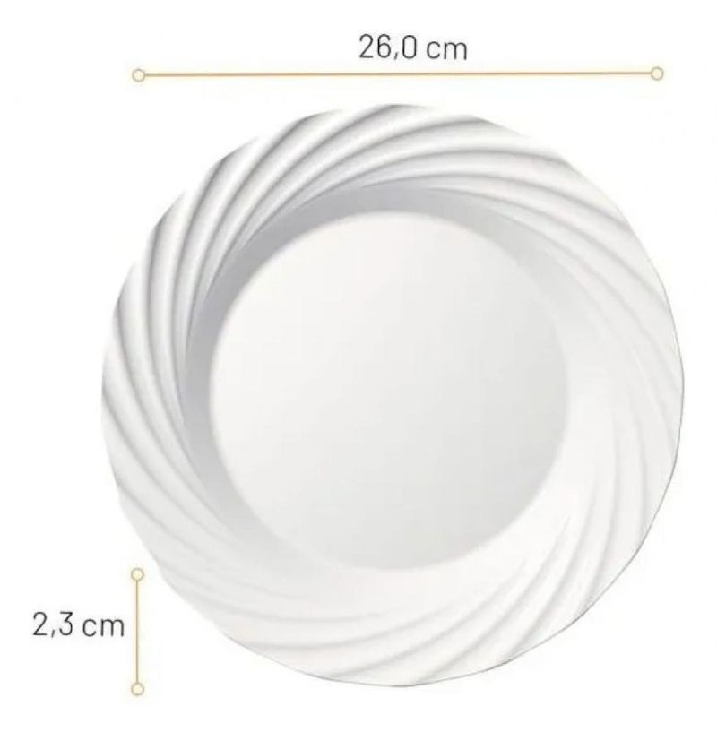 Conjunto 12 Pratos Duralex Jasmim Raso Almoço 26cm - Nadir Os Pratos Rasos Nadir Opaline Jasmim são a escolha ideal para quem busca unir praticidade, elegância e durabilidade no dia a dia. Com design clean e acabamento em vidro branco temperado, oferecem um visual leve e sofisticado para qualquer tipo de refeição, das mais simples às mais elaboradas. Produzidos com material resistente a impactos e totalmente livres de porosidade, esses pratos garantem mais higiene e facilidade na limpeza. São versáteis e funcionais: podem ser utilizados no micro-ondas, freezer, geladeira e também na lava-louças, tornando sua rotina muito mais prática. Indicado para: Servir refeições diversasMaterial: Vidro branco temperadoDimensões: 26 cm de diâmetro x 2,34 cm de alturaPeso: 0,4 kg Instruções de uso e conservação: Utilize esponja macia para a limpeza Enxágue bem para remover resíduos de sabão Evite o uso de abrasivos ou utensílios pontiagudos Não submeta o produto a choques térmicos ou impactos Garanta mais estilo, praticidade e segurança à sua mesa com os pratos Nadir Opaline Jasmim.