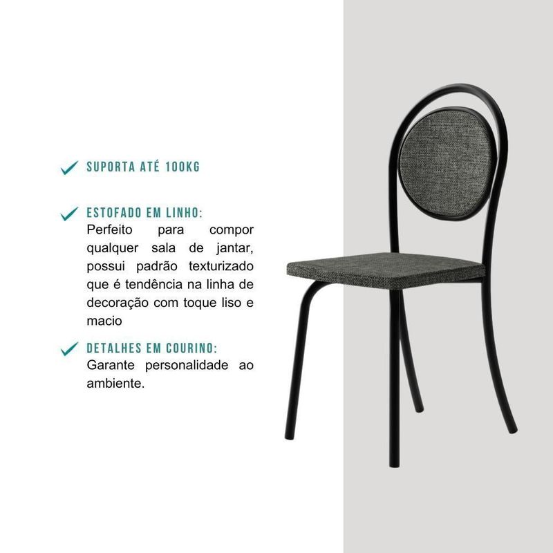 Conjunto 2 Cadeiras De Jantar 1738 Carraro Preto/cinzaO Conjunto de Cadeiras Carraro possui estilo clássico que consegue transmitir sofisticação para o ambiente. Conta com cores que combinam facilmente com diversas decorações, trazendo um toque único e elegante para a sua sala de jantar.Especificações do Produto:Medidas: Largura: 39 cm | Altura: 91 cm | Profundidade: 54,5 cmAltura até o assento: 48 cmPeso: 5,05 KgEstrutura: Tubos de açoAssento: EstofadoEncosto: EstofadoPonteira: PlásticaMontagem: SoldadaPeso suportado: Até 100 KgGarantia:Os produtos possuem garantia de 03 meses (se em condições normais), contra de fabricação, ou componentes utilizados.Esta garantia não cobre defeitos por inadequado ou abusivo, falta de cuidados e desbotamento dos revestimentos.Condições de perda da garantia:- Mau ou manuseio incorreto.- Desbotamento ca pela exposição direta da luz solar.- Danos cas por agentes da natureza, como inundações ou acidentes de qualquer espécie.- indevido de produtos abrasivos para realizar a limpeza.- Decurso do prazo estabelecido.Recomendações para uma boa conservação:- Não utilizar na limpeza produtos abrasivos tais como: palha de aço, álcool, vinagre, limão, saponáceo, ou produtos corrosivos que possam riscar ou descolar a película protetora dos móveis.- Na limpeza de móveis em geral, napas e fórmicas, deve ser utilizado um pano levemente umedecido e sabão neutro.- Para a movimentação do móvel é importante que este seja levantado do chão, pois ao arrastá-lo pode cautilizar estruturais.- Não deixe o móvel em exposição a intempéries.Informações importantes:- Trabalhamos para apresentar imagens fiéis ao produto real. Porém, as cores podem sofrer variações de acordo com o monitor, iluminação do ambiente em que se encontram e até por sua percepção visual comparado ao ambiente residencial.- Desta forma, as imagens são meramente ilustrativas.- Todos os objetos decorativos não acompanham o produto.- O produto acompanha manual com instruções para a montagem.- A empresa Móveis Carraro não realiza o serviço de montagem.PERGUNTAS FREQUENTES- Existem outras cores disponíveis?Sim, este produto possui outras cores disponíveis em outros anúncios.- Vocês m para todas as regiões do ? De que forma é feita a ?Sim, mos para todas as regiões do . E a é realizada por transportadoras parceiras.- Este produto é ou ?Todos os nossos produtos são s. E acompanham e certificado de garantia.- Recebo o produto montado?Não, este produto é enviado desmontado. Junto com ele é enviado manual com instruções para a montagem.- Vocês realizam a montagem do produto?Não possuímos o serviço de montagem. Estado de Origem: RS | Revestimento: Tecido | Altura (cm): 91 cm | Cor do Revestimento: Cinza | Cor: Grafite | Cor Via : Cinza | Material para Filtro: Metal | Família da Cor: Cinza | Peso: 9,10 | Profundidade (cm): 54,5 cm | Material do Assento: Madeira | Largura do produto (cm): 39 cm | Ambiente indicado: Cozinhas | Tamanho: Baixa | Produto: Cadeira | Peso do Produto com Embalagem (kg): 10,10 kg | Conteúdo da Embalagem: 1 Conjunto 2 Cadeiras De jantar 1738 Carraro Preto/Cinza | Produto precisa de Montagem?: Sim | Altura do Produto com Embalagem (cm): 40 | Largura do Produto com Embalagem (cm): 65 | Comprimento do Produto com Embalagem (cm): 94 | Nome Simples no Fornecedor: Conjunto 2 Cadeiras De jantar 1738 Carraro Preto/Cinza | Descrição do Tamanho: 91 cm x 39 cm x 54,5 cm | Instruções/Cuidados: Nenhuma Informação | PrazoExp: 10