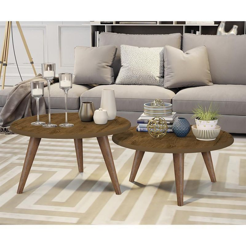 Conjunto 2 Mesas De Centro Redondas Grazi - Pé Palito Em Madeira Maciça Freijó - J3 Móveis FreijóConjunto 2 Mesas de Centro Redondas Madeira Pé Palito ? MoveloveCharme e sofisticação para um ambiente ainda mais elegante!O Conjunto de Mesas de Centro Redondas Pé Palito traz um design retrô moderno, perfeito para quem deseja adicionar um toque de requinte à decoração. Com pés palito em madeira maciça e estrutura robusta, essas mesas são ideais para compor salas de estar, espaços de convivência e até mesmo escritórios. Sua versatilidade permite o uso em conjunto ou separadamente, tornando o ambiente mais funcional e aconchegante.Características TécnicasDimensões da Mesa de Centro Grazi 1 (Maior): Altura: 33 cm Largura: 52 cm Profundidade: 53 cmDimensões da Mesa de Centro Grazi 2 (Menor): Altura: 28 cm Largura: 52 cm Profundidade: 53 cmDiferenciais: Design retrô sofisticado 3 Pés de madeira maciça, proporcionando estabilidade e durabilidadeBenefícios e Funcionalidades Design moderno e sofisticado, combinando com diversos estilos de decoração Versatilidade no uso, podendo ser utilizadas juntas ou separadas conforme necessidade Ideal para salas de estar, quartos, escritórios e espaços de convivênciaObservações Importantes- Os objetos que ambientam as fotos não acompanham o produto.- O produto será entregue desmontado.- É de inteira responsabilidade do cliente a montagem do produto e/ou instalação, custos de por escadas e/ou elevadores, guincho, assim como possíveis provenientes de manuseio inadequado.- Embora o produto acompanhe o manual de montagem, verifique a complexidade antes de decidir montá-lo sozinho. Recomendamos que contrate um de sua confiança.- Mantenha as informações de e de atualizadas para entrarmos em , caso seja necessário.- Fique atento, nossas cores podem sofrer alterações dependendo do seu monitor.Conteúdo da Embalagem 1 Mesa de Centro Grazi 1 1 Mesa de Centro Grazi 2Mesa de Centro, Conjunto de Mesas, Mesa Redonda, Pé Palito, Madeira Maciça, Design Retrô, Sala de Estar, Decoração Sofisticada, Estilo Moderno, Alta Qualidade. Cor: Preto | Cor: Freijó