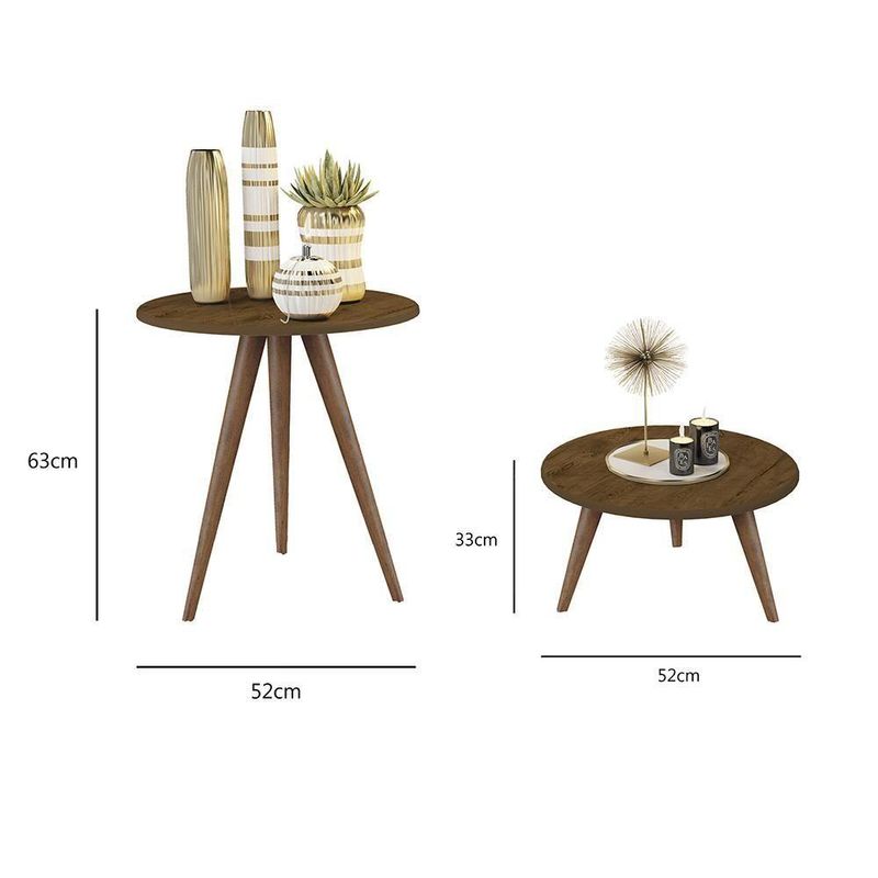 Conjunto 2 Mesas Retrô Natália - Pés Palito Lateral Apoio Mdf Mdp Madeirado - J3 MóveisConjunto 2 Mesas Retrô Pés Palito Lateral e Apoio Natália ? MoveloveEstilo retrô e elegância para sua sala de estar!O Conjunto Natália é perfeito para quem busca um design retrô sofisticado e versátil. Com um acabamento refinado e pés palito em madeira maciça, essas mesas trazem um toque de modernidade e funcionalidade para qualquer ambiente. Seja para apoiar objetos decorativos, apoiar copos ou servir como mesas auxiliares, esse conjunto proporciona beleza e praticidade ao seu espaço.CaracterísticasDimensões do Produto MontadoMesa Lateral:- Altura: 33 cm- Largura: 52 cm- Profundidade: 52 cm Mesa de Apoio:- Altura: 63 cm- Largura: 52 cm- Profundidade: 52 cm Materiais e Estrutura Estrutura robusta: Produzida em alta qualidade Acabamento refinado: garantindo maior durabilidade Pés palito em madeira maciça, proporcionando maior estabilidade e um toque retrô sofisticadoBenefícios e Funcionalidades Estilo retrô e moderno, combinando com diferentes decorações Duas peças versáteis, podendo ser utilizadas juntas ou separadamente Ideal para sala de estar, quarto, escritório ou áreas de recepção Fácil montagem e excelente durabilidade Design compacto, perfeito para otimizar espaços pequenosObservações Importantes- Produto não deve ser exposto diretamente ao sol, calor ou umidade excessiva.- Para limpeza, utilize apenas um pano seco ou levemente umedecido; evite produtos abrasivos.- O produto pode apresentar variação de tonalidade conforme o monitor ou dispositivo.- Imagens meramente ilustrativas; objetos decorativos não acompanham o produto.Conteúdo da Embalagem 1 Conjunto de 2 Mesas Retrô Pés Palito Lateral e Apoio Natália ? Movelove 1 Manual de MontagemMesa de Centro, Mesa Lateral, Conjunto de Mesas, Mesa de Apoio, Mesa Retrô, Pés Palito, MDF, MDP, Design Moderno, Sala de Estar, Decoração Vintage, Pés em Madeira Maciça, Estilo Retrô, Organização, Funcionalidade, Móveis de Qualidade. Cor: Madeirado