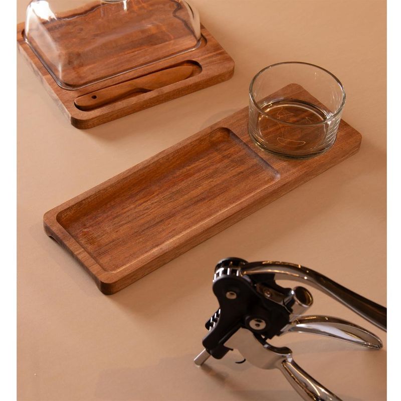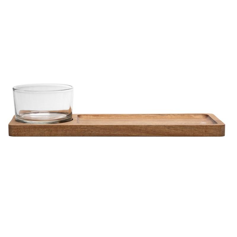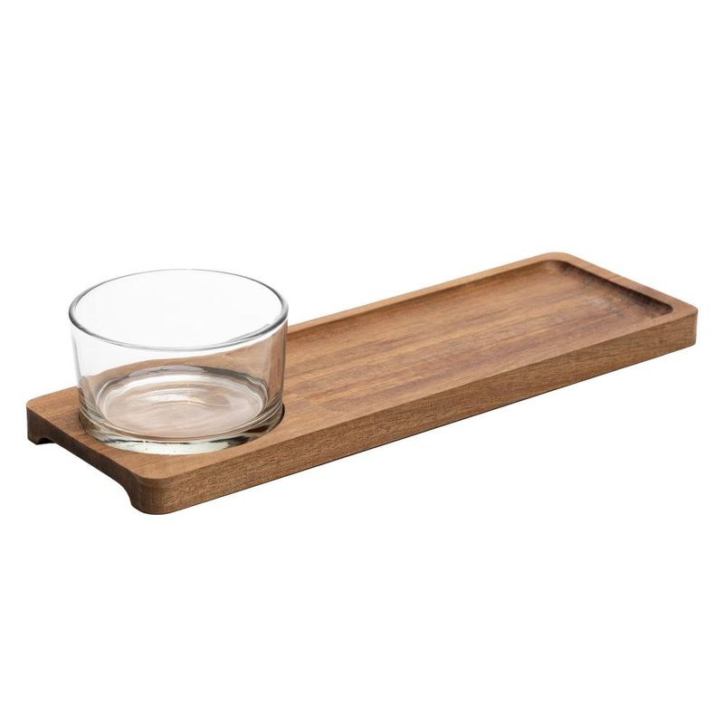 Conjunto 2 Peças Petisqueira com Bandeja Lignum 30cm x 10cm Contém: 1 Bandeja 30x10x1,5cm1 Petisqueira 9x9x5,5cmMedidas Produto: Altura 5,00cm x Largura 9,00cm x Comprimento 30,00cmPeso: 0,36KgLIMPAR COM FLANELA BRANCA E SECA. NÃO UTILIZAR PRODUTOS QUÍMICOS.