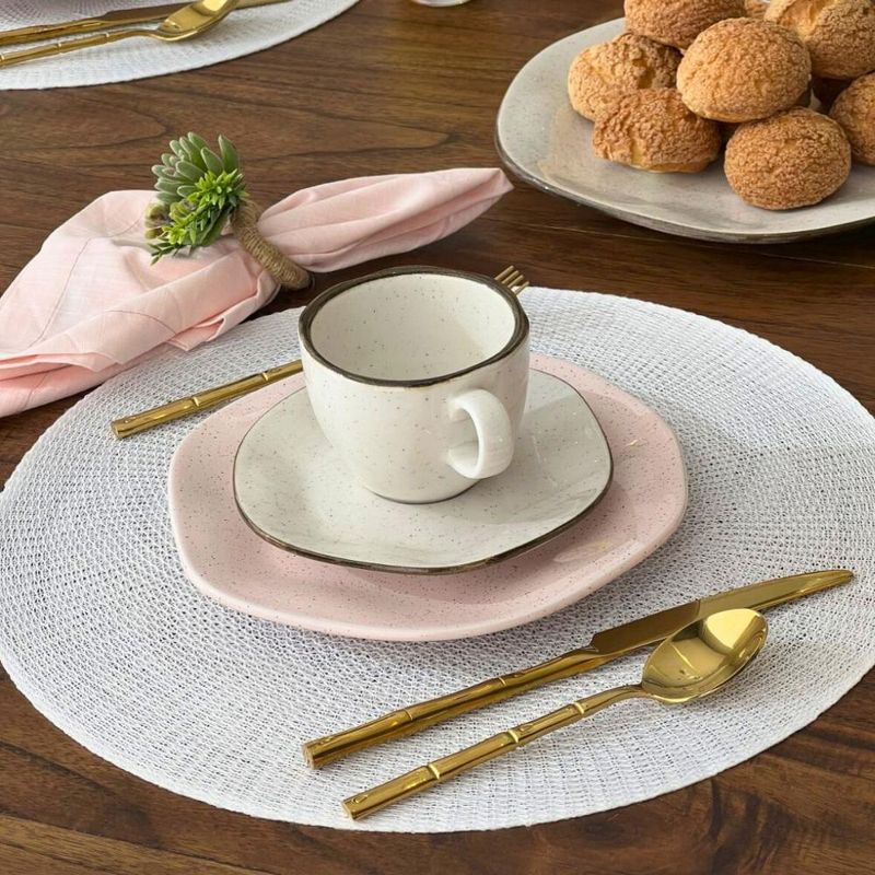 Conjunto 2 Pratos de Sobremesa 21,5cm Ryo Pink Sand Porcelana Oxford Valorizar o imperfeito, o processo de criação até o seu acabamento. Este é o conceito wabi-sabi, uma visão de mundo japonesa praticada desde o século XV e que tem como base os ideais de uma estética que exalta o irregular, o impermanente e o incompleto. Seguindo essa tendência amplamente utilizada em vários itens de decoração, a Oxford apresenta a coleção Ryo: peças únicas que valorizam o trabalho manual e as composições imperfeitas. Em Bahamas, no Caribe, fica a encantadora praia Pink Sands. Famosíssima ao redor do mundo, essa praia possui uma areia com tonalidade rosa, graças aos milhares de pedaços de coral quebrados que ficam por ali. As peças são decoradas através de um processo manual com pigmentos de tinta, o que garante que cada prato e cada xícara sejam exclusivos e especiais. A coleção Ryo Pink Sand agora também tem uma variedade de peças complementares, como canecas, travessas e tigelas para completar a sua mesa. Descrição do produtoMarca: OxfordModelo: RyoColeção: Pink SandMaterial: PorcelanaTamanho: 21,5 cmConteúdo: 2 un do Prato de Sobremesa 21,5cm Ryo Pink Sand Porcelana Oxford Imagens meramente ilustrativas, todos os itens que ambientam o produto não estão inclusos.
