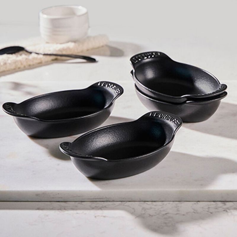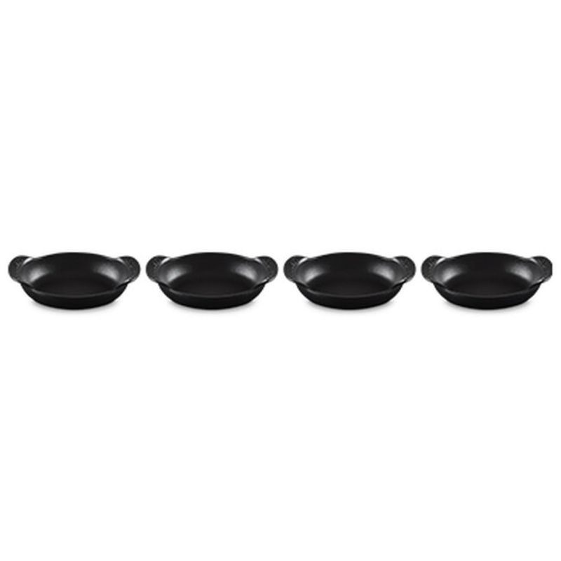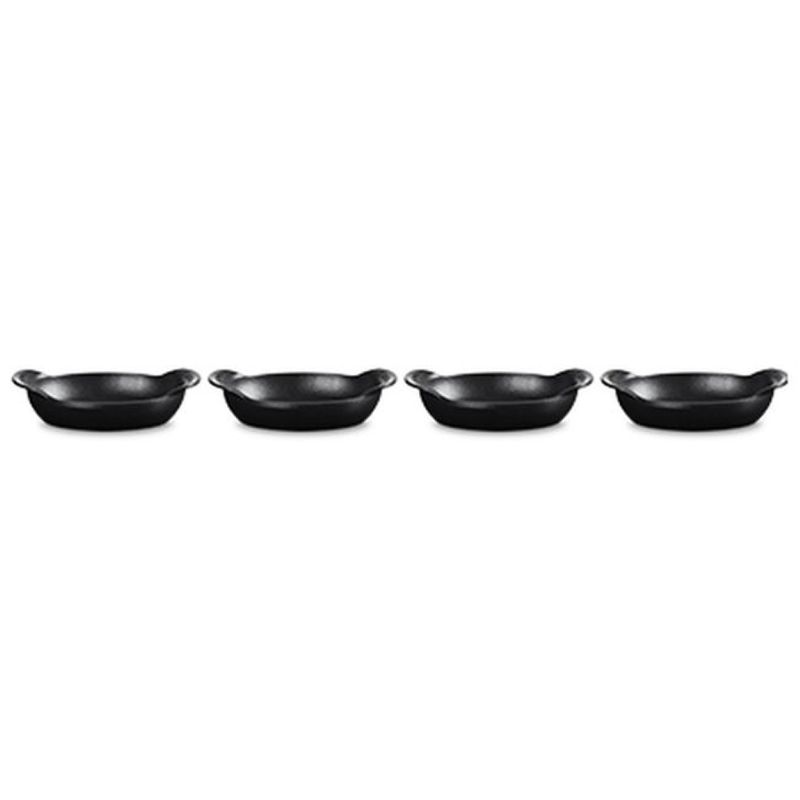 O Set com 4 Assadeiras Ovais Gourmand 15cm foi criada em proporções perfeitas para quem aprecia a arte de receber e servir bem. Com formato oval alongado e design de perfil baixo, é ideal para levar do forno à mesa pratos principais individuais ou para compartilhar, acompanhamentos, massas, sobremesas e muito mais. - Destaques:• Paredes internas curvas e fundo plano que facilitam o preparo, o servir e a limpeza• Alças exclusivas, maiores e curvadas para cima, que oferecem mais conforto no manuseio• Empilháveis para praticidade na hora de servir, lavar e guardar• Ferro fundido esmaltado com distribuição e retenção de calor superiores, mantendo os alimentos quentes ou frios por mais tempo• Totalmente esmaltada, pronta para usar• Esmalte preto fosco fácil de limpar, resistente a manchas, riscos, lascas, trincas e ferrugem• Desenvolve pátina natural ao longo do tempo, melhorando a performance de cozimento• Segura em todas as fontes de calor, incluindo indução, até 450°C• Compatível com lava-louças residenciais e industriais, e com utensílios de metal - Especificações:• Tamanho: 15cm• Comprimento: 7,4cm• Largura: 4,4cm• Altura: 1,8cm• Material: Ferro Fundido• Fonte de Calor: Vitrocerâmico, Indução, Elétrico, Gás, Radiante, Grill, Forno• Modo de Lavagem: Lava Louças, Lavagem a Mão• País de Origem: França