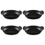 O Set com 4 Assadeiras Ovais Gourmand 15cm foi criada em proporções perfeitas para quem aprecia a arte de receber e servir bem. Com formato oval alongado e design de perfil baixo, é ideal para levar do forno à mesa pratos principais individuais ou para compartilhar, acompanhamentos, massas, sobremesas e muito mais. - Destaques:• Paredes internas curvas e fundo plano que facilitam o preparo, o servir e a limpeza• Alças exclusivas, maiores e curvadas para cima, que oferecem mais conforto no manuseio• Empilháveis para praticidade na hora de servir, lavar e guardar• Ferro fundido esmaltado com distribuição e retenção de calor superiores, mantendo os alimentos quentes ou frios por mais tempo• Totalmente esmaltada, pronta para usar• Esmalte preto fosco fácil de limpar, resistente a manchas, riscos, lascas, trincas e ferrugem• Desenvolve pátina natural ao longo do tempo, melhorando a performance de cozimento• Segura em todas as fontes de calor, incluindo indução, até 450°C• Compatível com lava-louças residenciais e industriais, e com utensílios de metal - Especificações:• Tamanho: 15cm• Comprimento: 7,4cm• Largura: 4,4cm• Altura: 1,8cm• Material: Ferro Fundido• Fonte de Calor: Vitrocerâmico, Indução, Elétrico, Gás, Radiante, Grill, Forno• Modo de Lavagem: Lava Louças, Lavagem a Mão• País de Origem: França